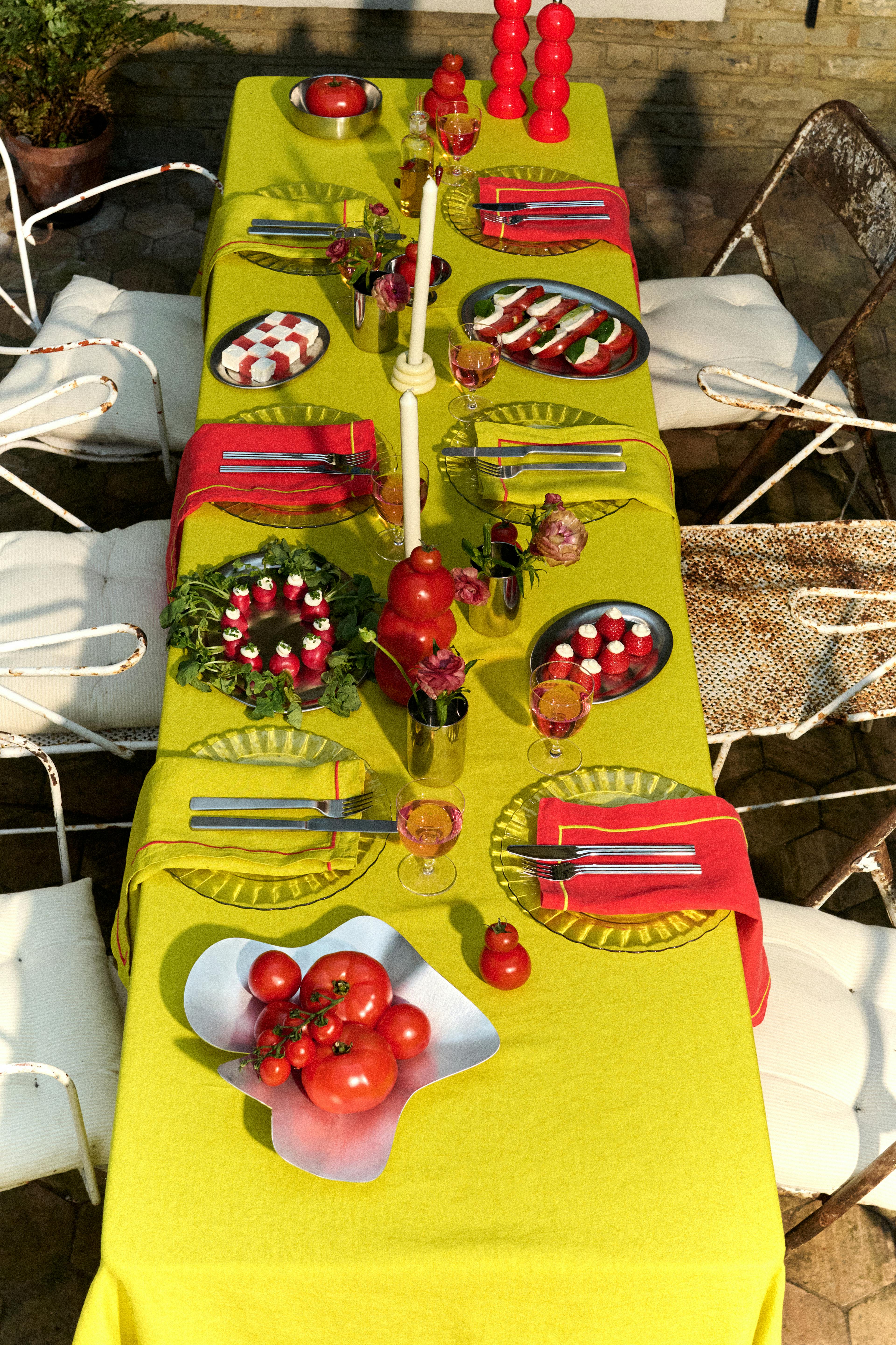 Tomato & Vine: a punchy palette that rethinks traditional table linen. The lime green is piece-dyed for richness; the sharp red border adds an unexpected twist. Bold but minimal, with clean mitred edges and graphic simplicity at its core. Made in Portugal from 100% linen, the Vine collection reflects Glassette’s love of strong colour stories and thoughtful design - made to be mixed, layered and lived with.