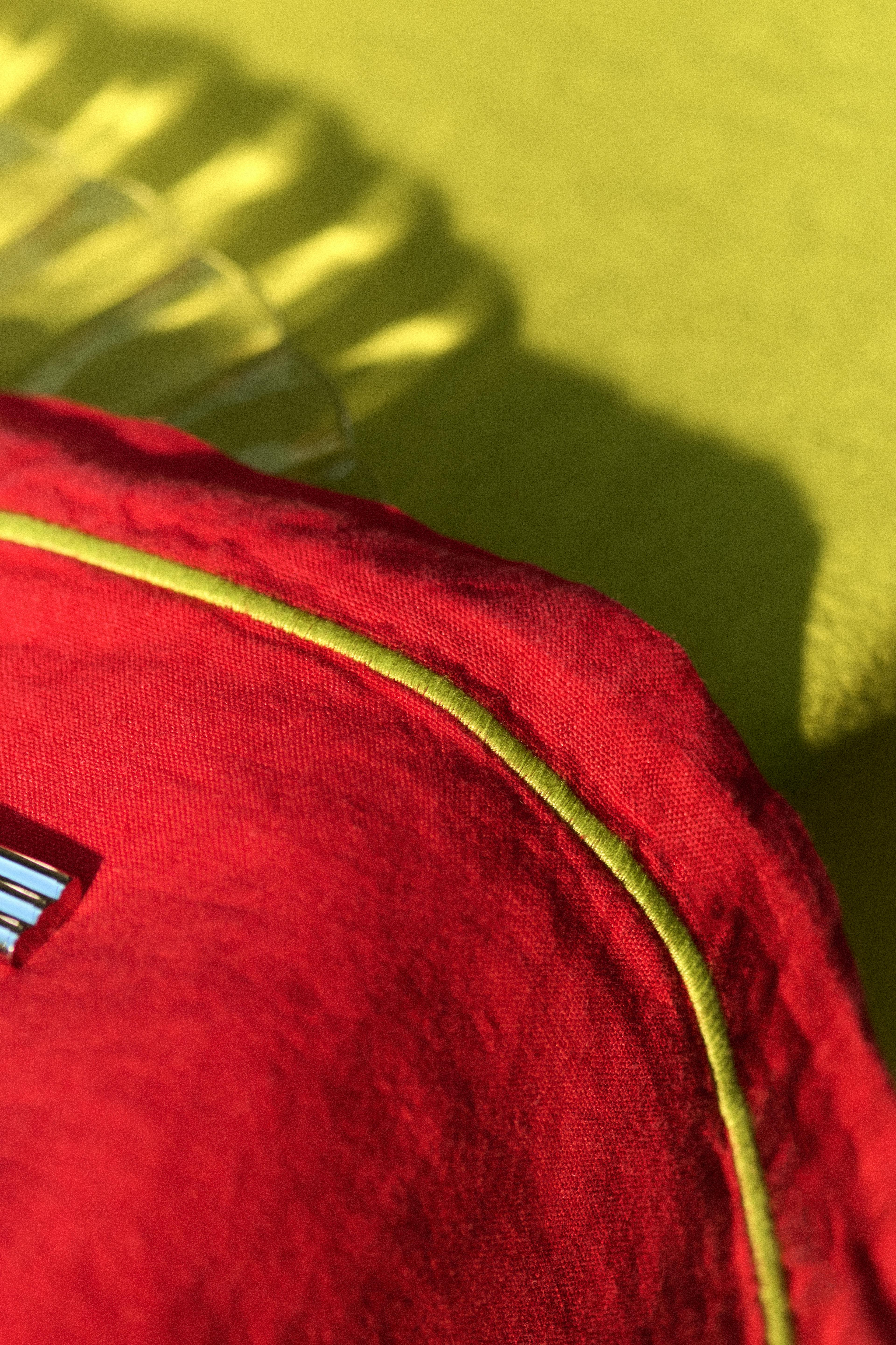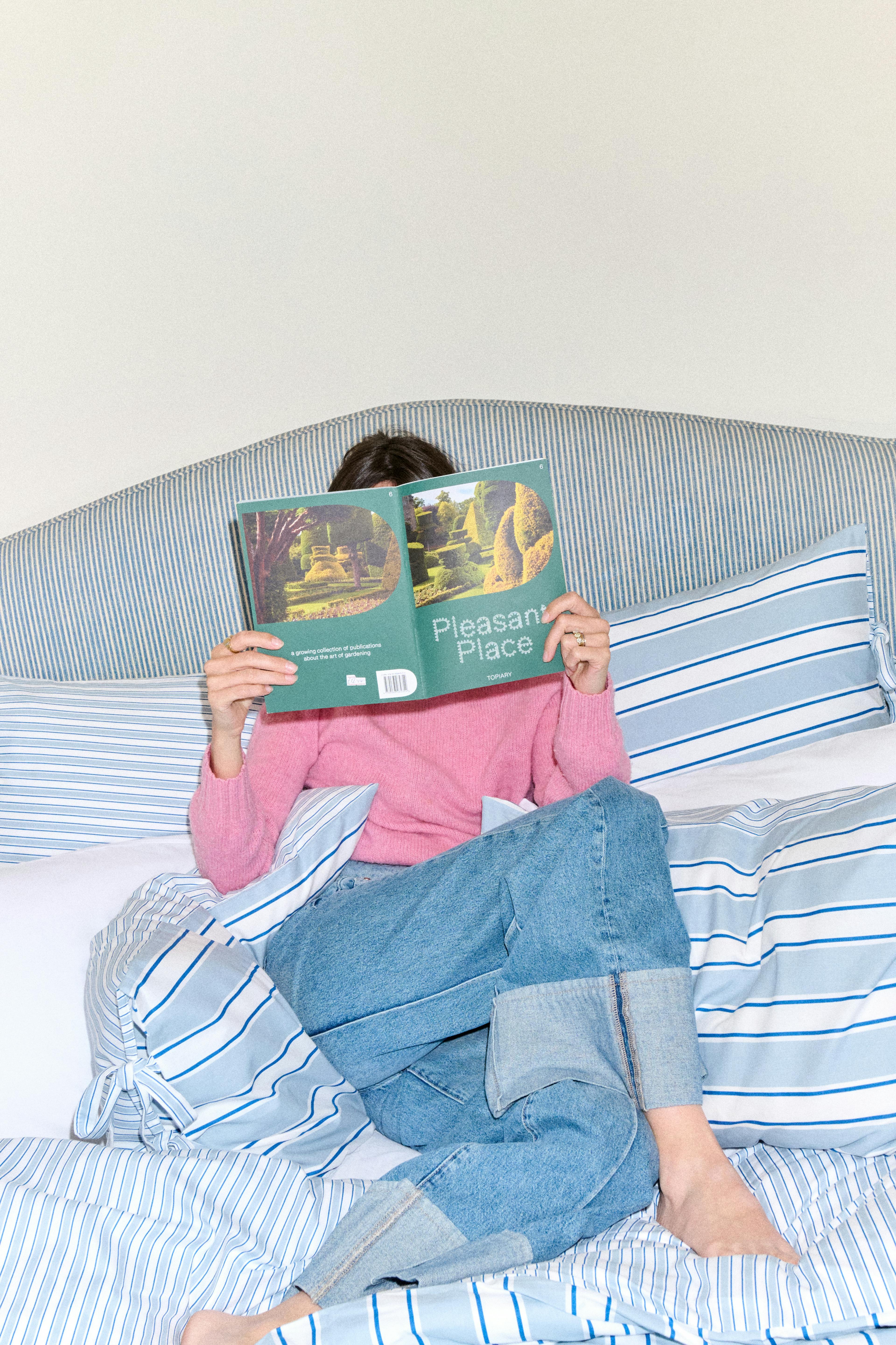 Teddy is a love letter to nostalgia. The soft blue stripes, the cotton bow ties, the gentle sense of familiarity. Inspired by childhood bedrooms, the Teddy collection reimagines the classic stripe with a fresh perspective. Reversible and made in Portugal from 100% cotton, it’s detailed with recycled plastic buttons and thoughtful finishes that feel both romantic and relaxed.