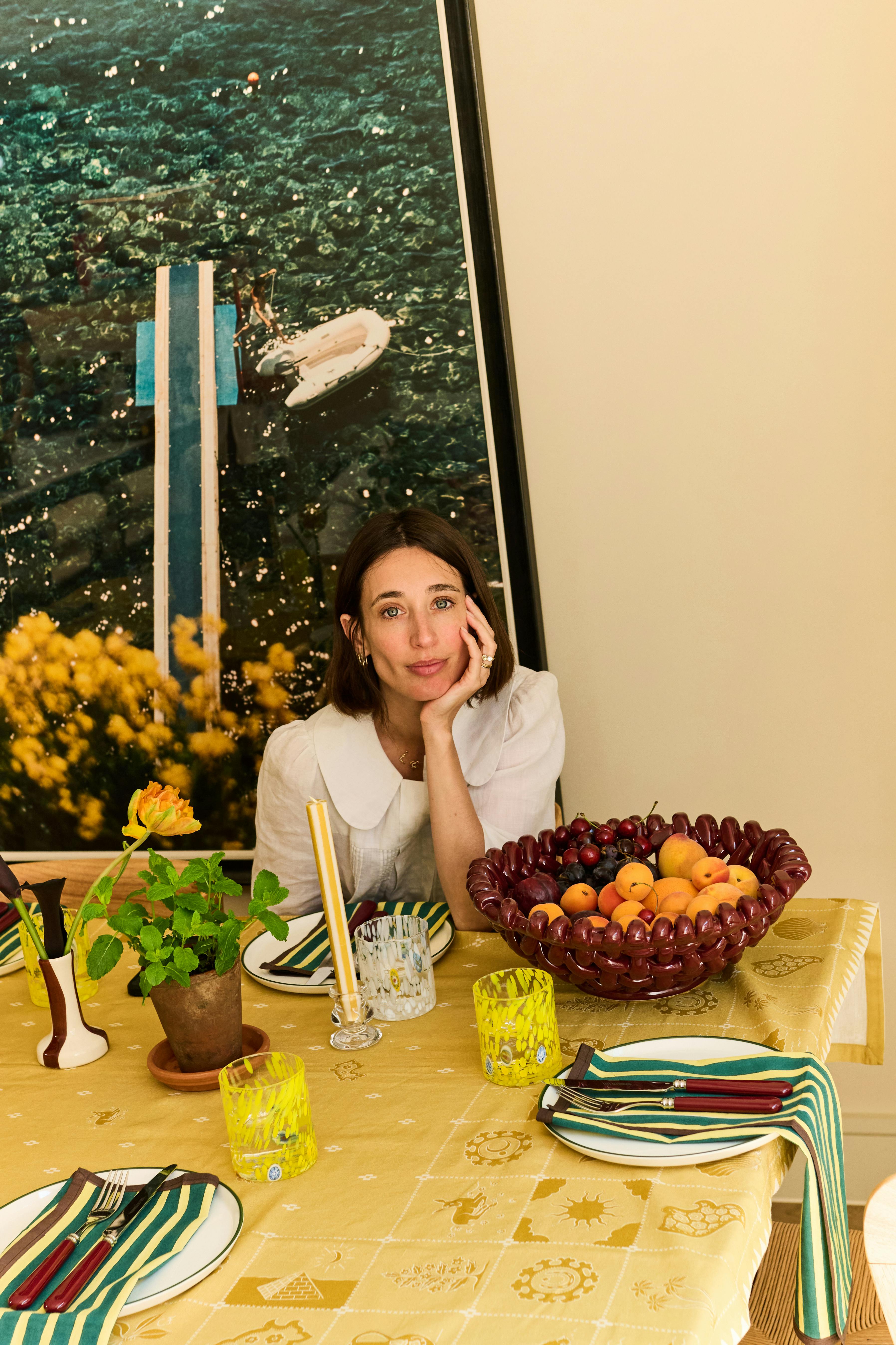 We brought colour and joy to the dining space with a beautifully bold tablecloth by Cherry Flips and vibrant napkins from Yod and Co – pieces that instantly lift the room and make it feel ready for hosting. On the wall, we hung a photograph by Lucy Laucht that captures the carefree pleasure of being by the sea. It’s playful, nostalgic and adds a sense of escapism.