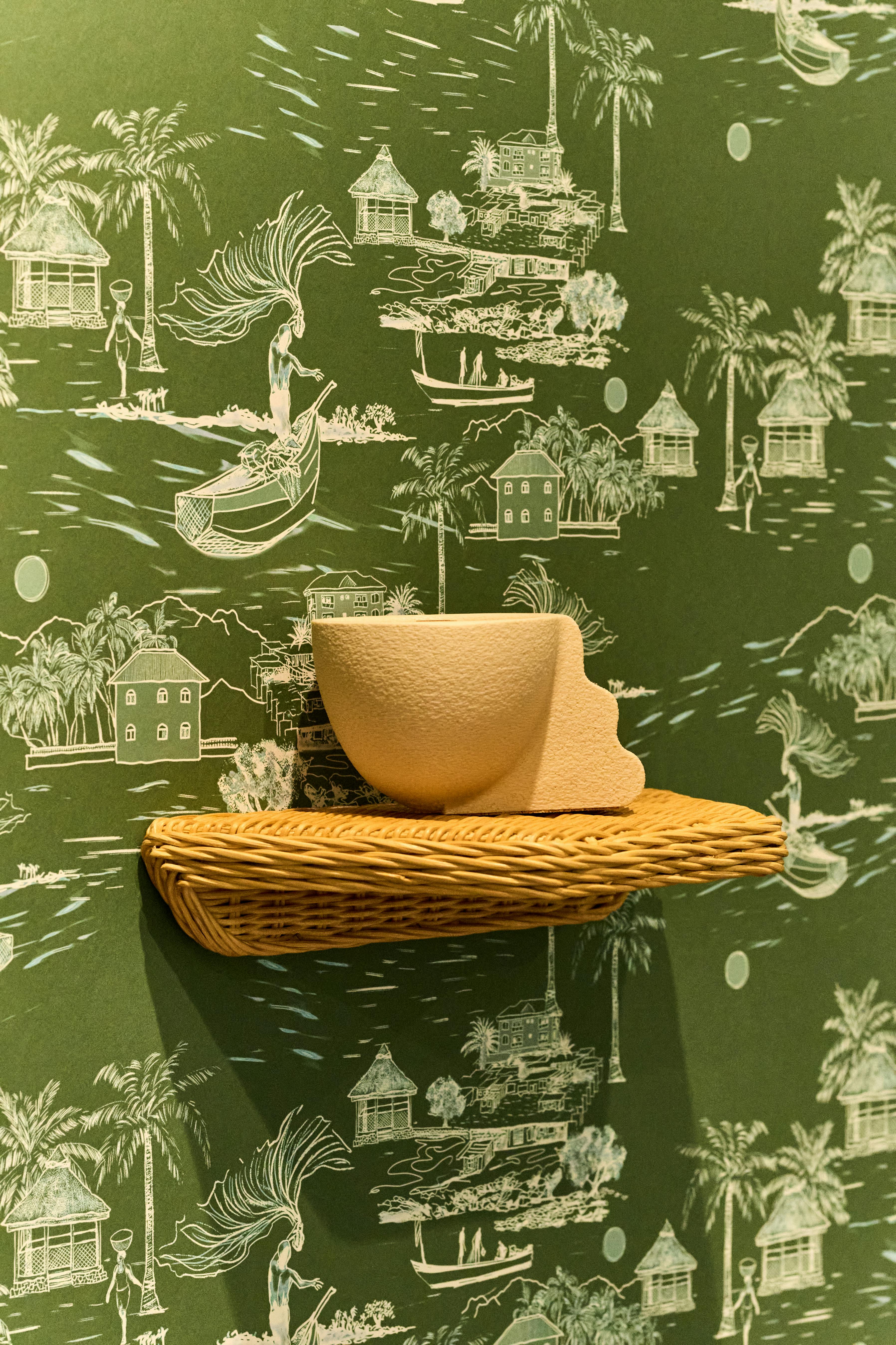 In the bathroom, we added this joyful wallpaper by Dar Leone – a vibrant, uplifting print that brings personality to the smallest room in the house. It’s fun, unexpected and something to look at while you're on the loo!