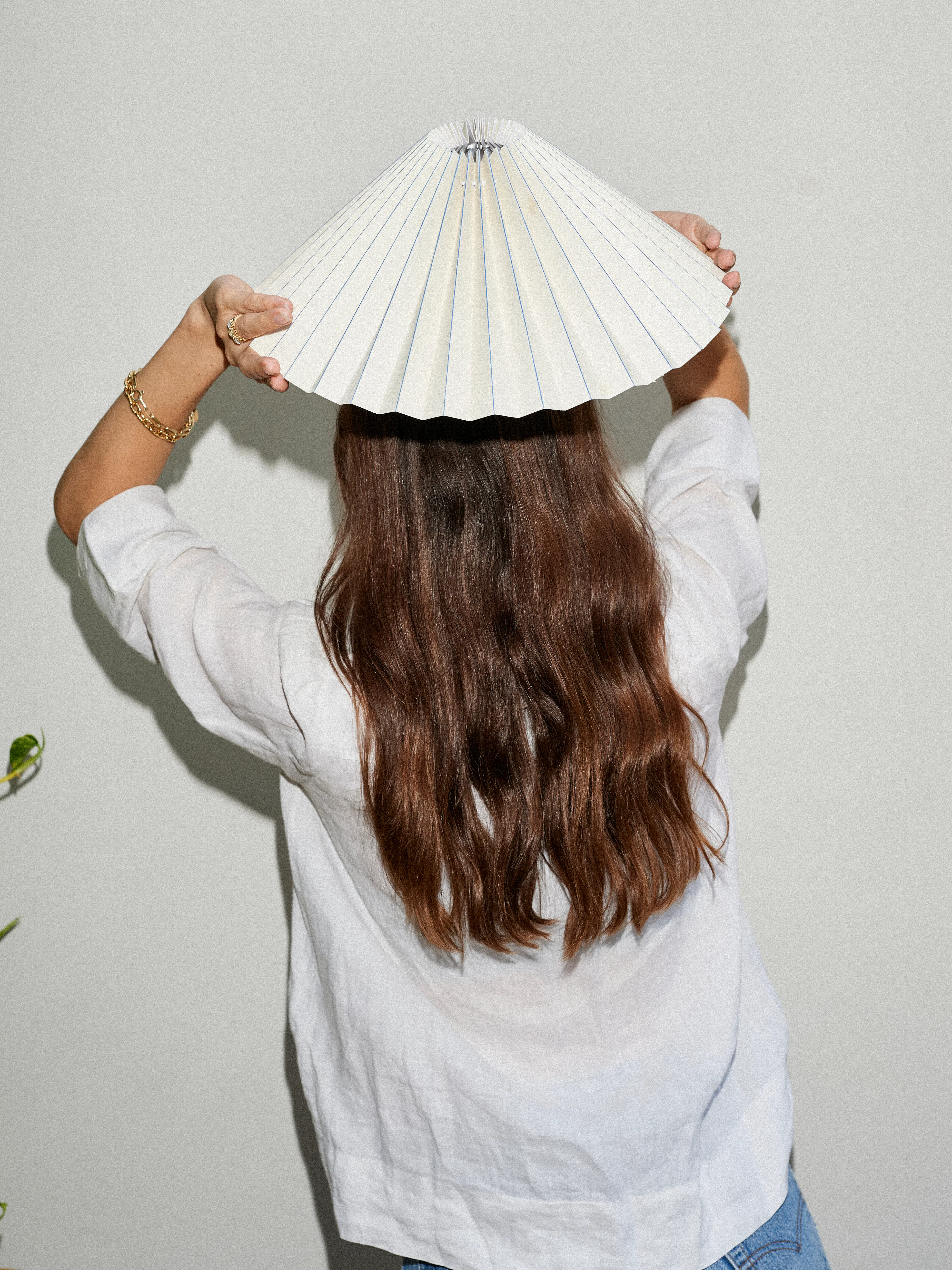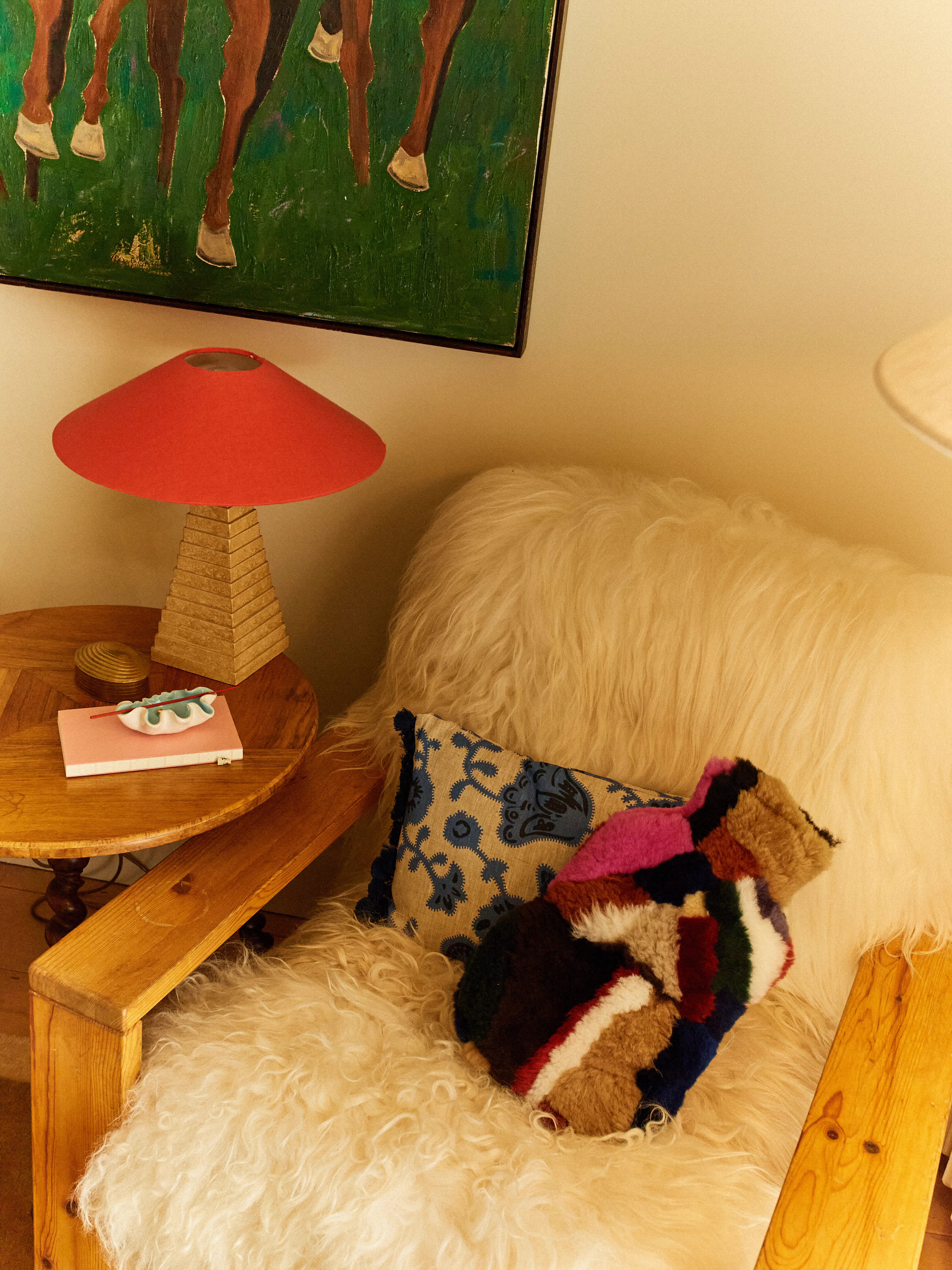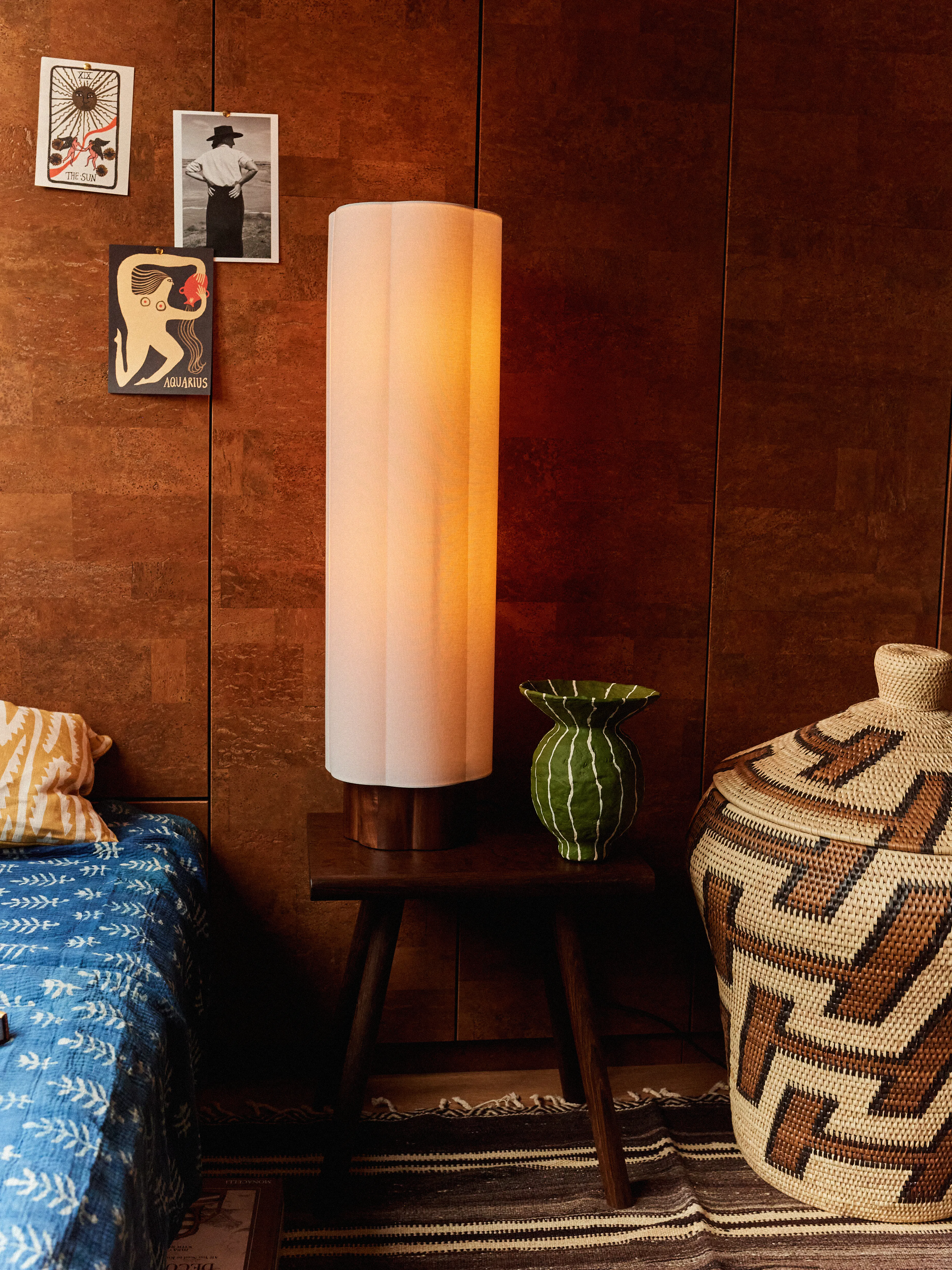 Look for: Opal globe pendants, linen shades, or ribbed glass table lamps that glow even when switched off.