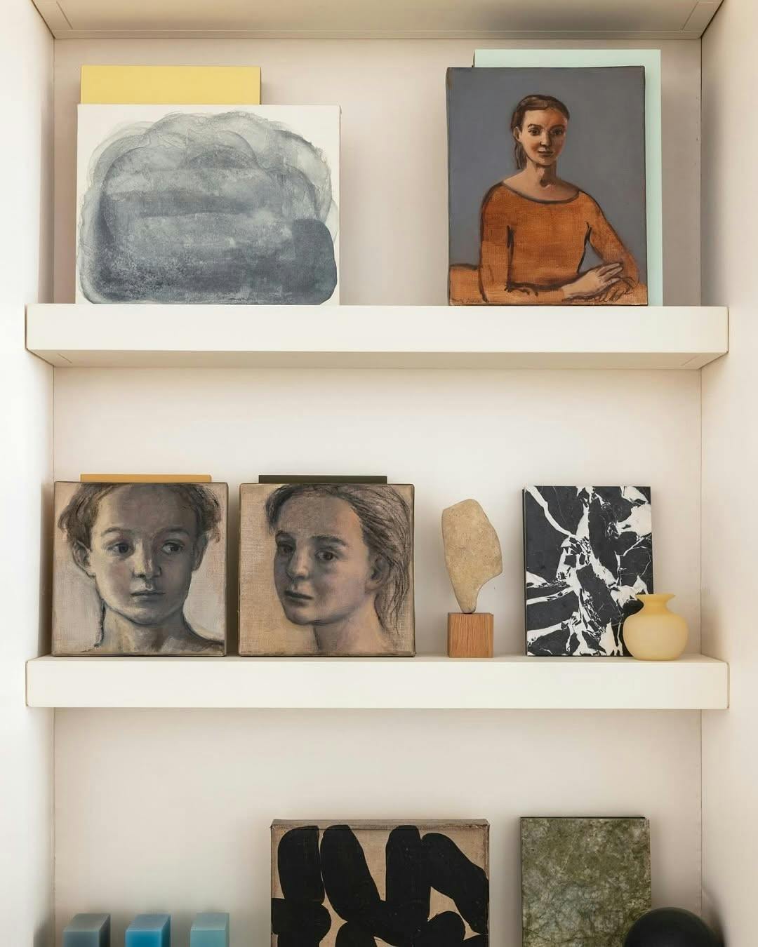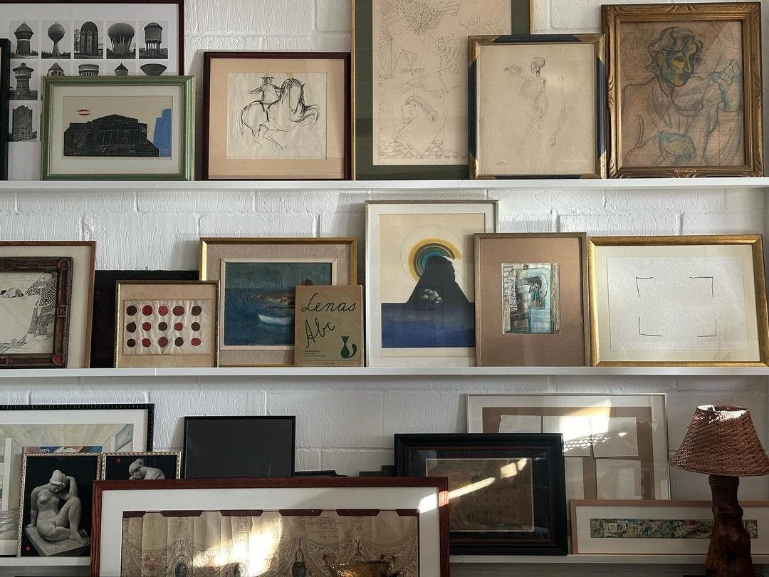 Before committing to a wall of nails, try a picture ledge or two. Lean things. Overlap them slightly. Mix artwork with postcards, a small sculpture, a book with a good spine. Rotate it when you feel like it. It stays loose, which means it never really goes stale.