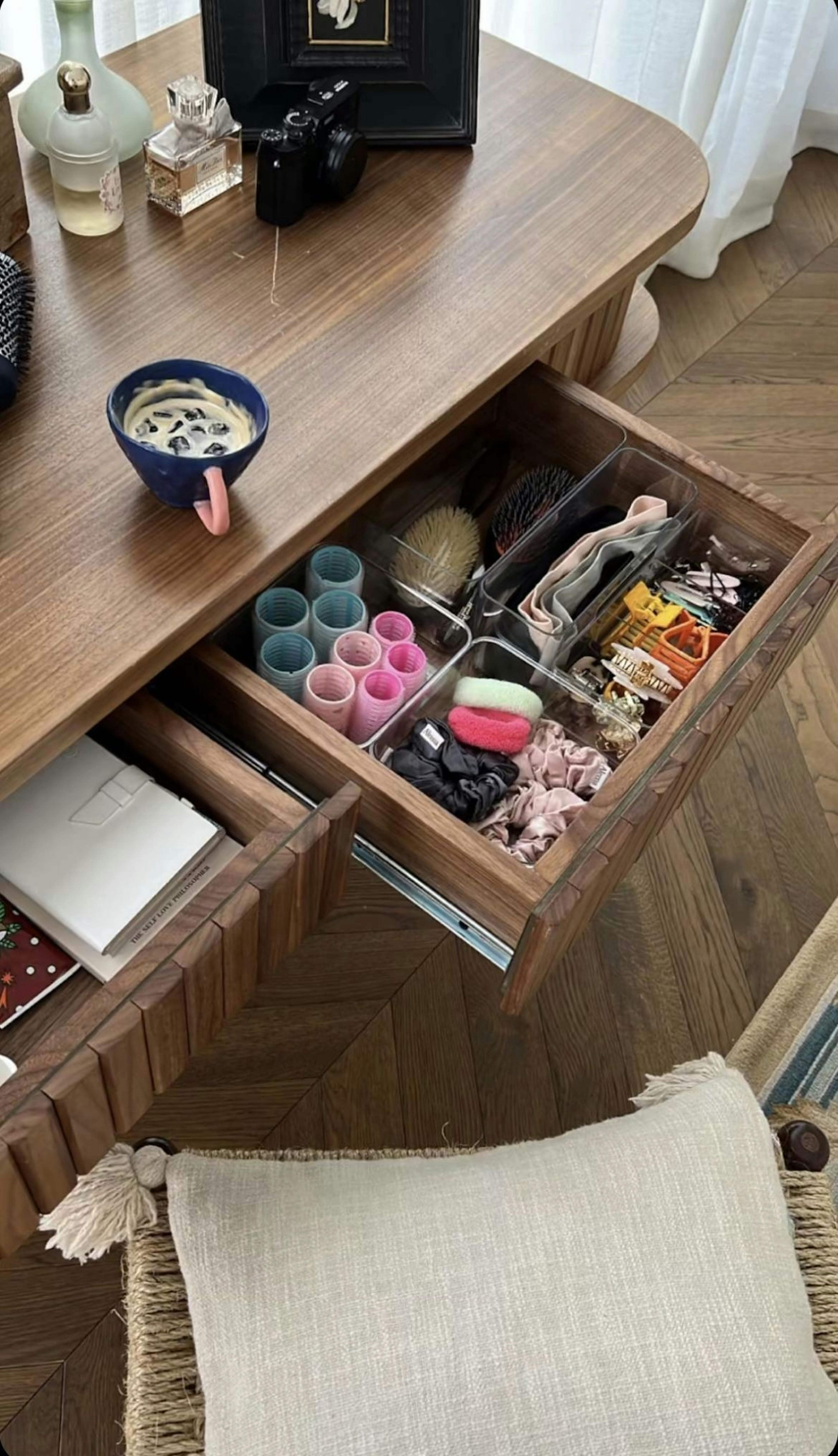 Plastic organisers are fine. But an everything drawer is more likely to stay organised when it feels nice to open. Beauty isn’t extra here - it’s behavioural design.