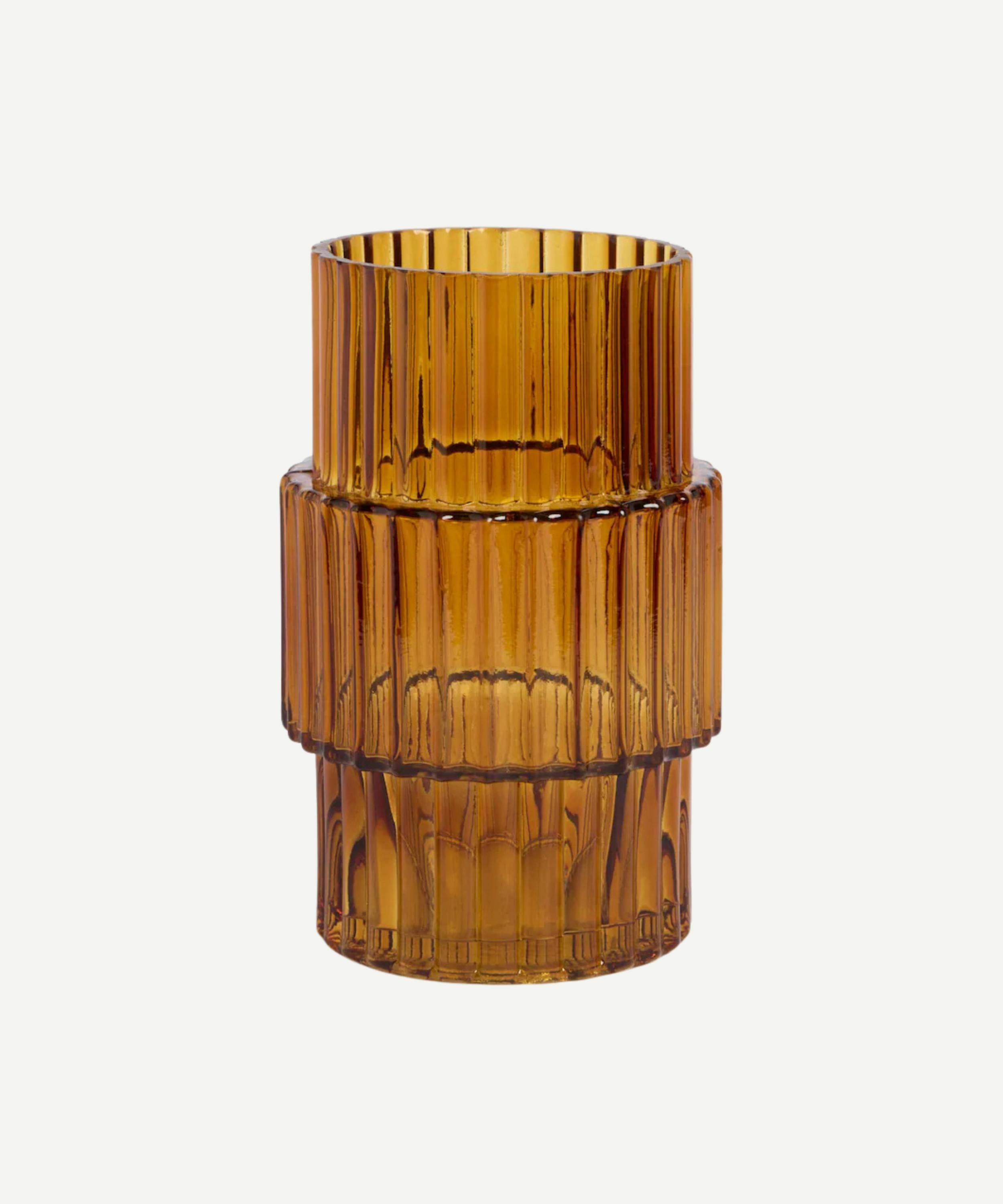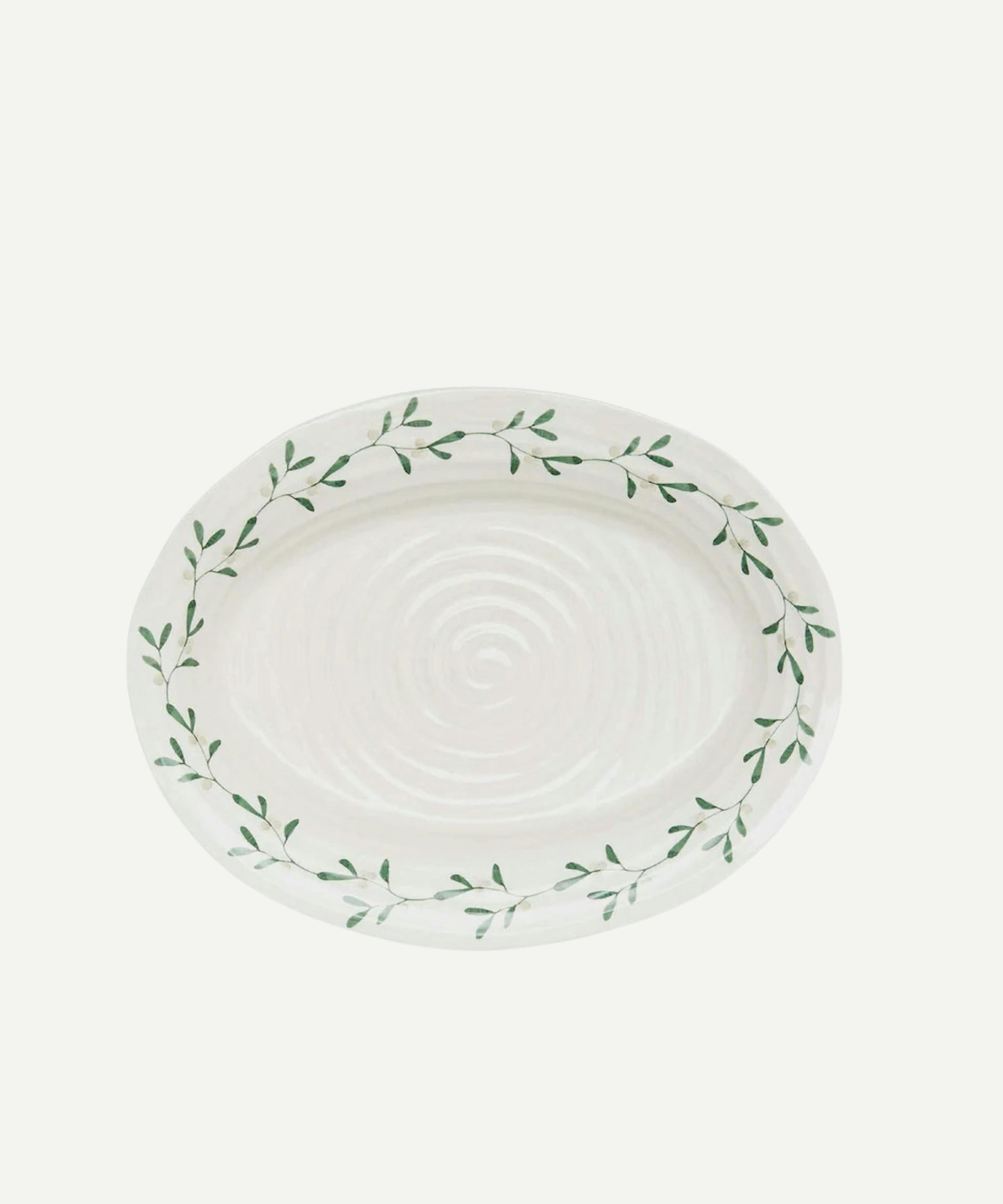 Autumnal colours, clementine towers, a centrepiece pie and playful checks set the stage for a table full of charm. Built upwards like festive towers, trifle bowls and tiered stands bring colour, height and a touch of surprise to the scene. The Nina Campbell Teal Blue Woven Seagrass Placemats ground the table with rich texture, and the Otis Dinner Set adds depth and contrast, while the Amber Small Ribbed Glass Vase catches the light - a warm finishing touch to a table layered with creativity and autumnal cheer.