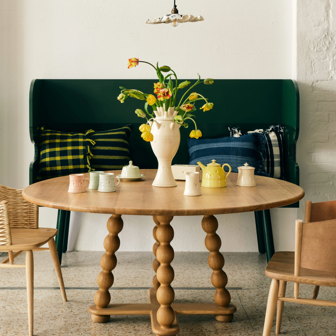 For a subtle injection of the trend that can be placed in any room, Alfred Newall’s bobbin mirrors and lamp bases offer a beautiful injection of tradition in a way that feels perfectly at home in 2023. His work is inspired by “historic vernacular furniture and its place within contemporary interior”, utilising sustainably sourced materials and traditional methods to create beautiful pieces that perfectly balance antique appeal with a modern day flourish.
