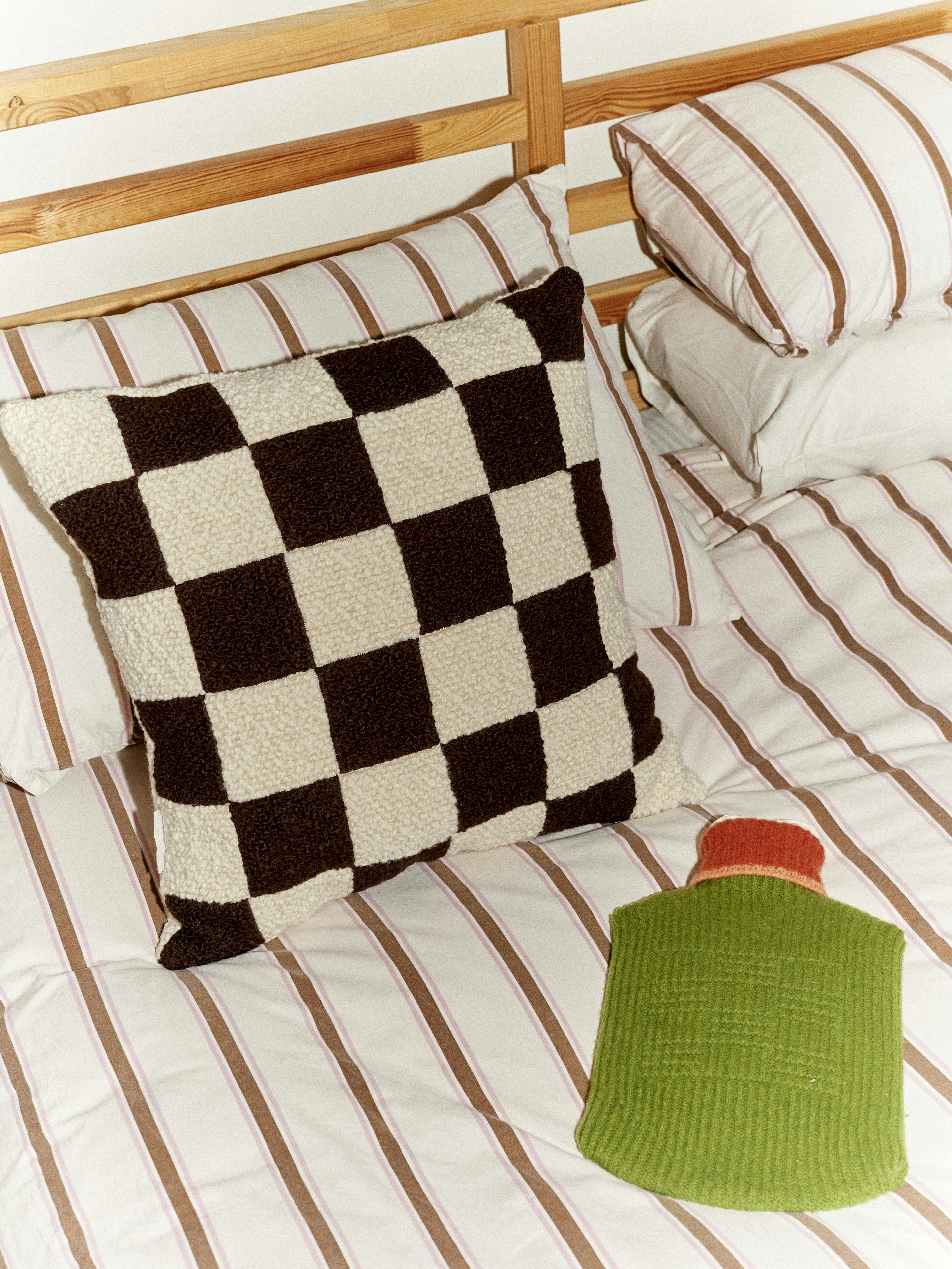 If you only introduce one decorative element, make it a lumbar pillow. Hotels love them for a reason: they anchor the bed, feel intentional, and don’t overwhelm. They’re also genuinely useful for lower-back support when sitting up. A long, softly structured lumbar placed dead centre is often all you need to complete the perfect pillow setup.
