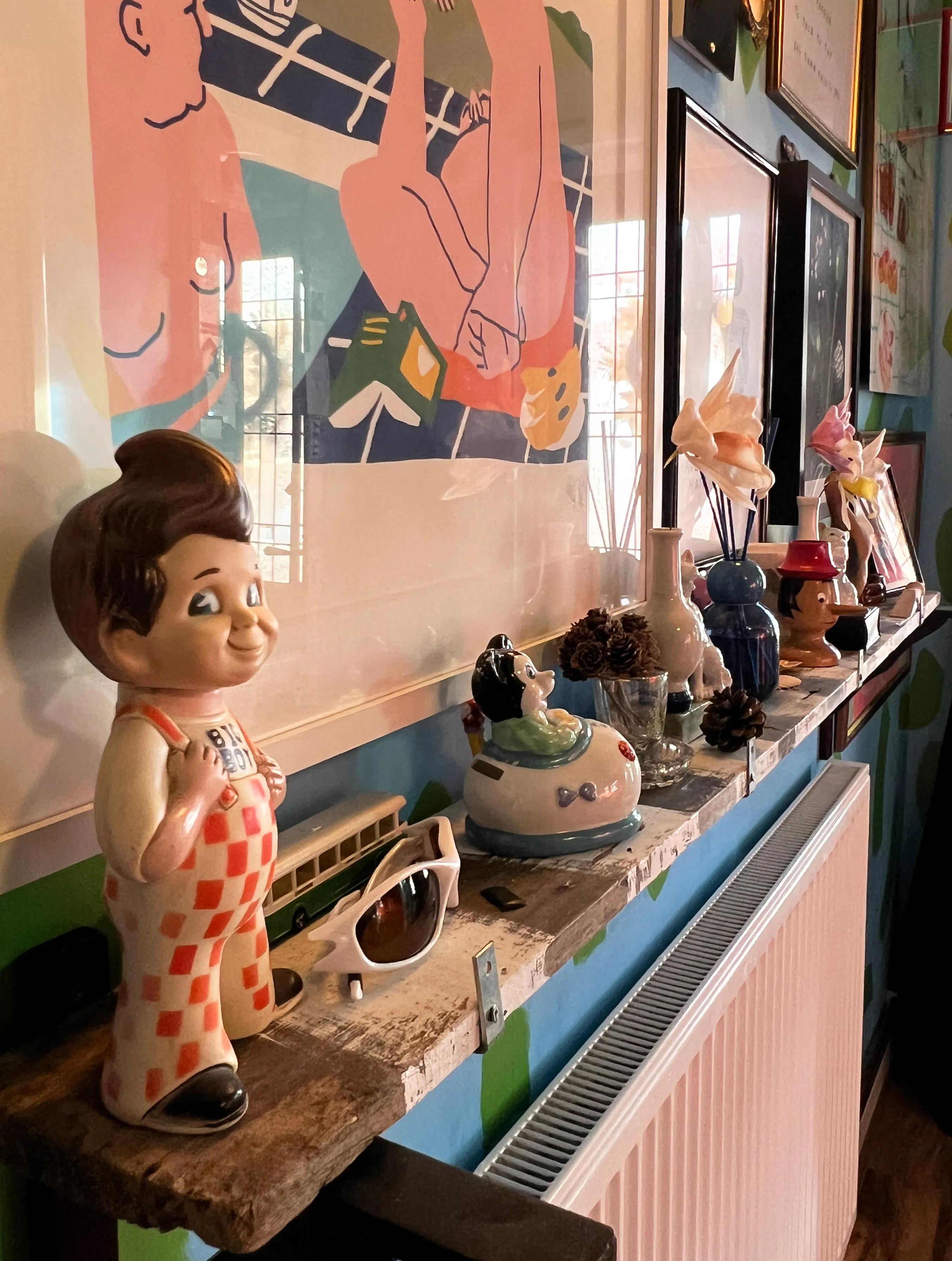 Just pick a colour and paint it to start and then find stuff that you love. I feel like everyone likes something as a subject matter, and likes to collect things. So start with putting together all your favourite things on that wall. You want to make something that, when you look at it, will make you happy, and give you a bit of a heart flutter, and also something that you can change and modify, so it's not always constant, because your attitudes and moods change. So you might want to change stuff around, once a year, twice a year, every couple of years. But yeah, I think just not to be afraid with starting and jumping into it, and coming up with something that you love, and that every me you walk past, you'll still love, and grow to love even more and feels inspiring and mood lifting. I think that was quite a good answer.
