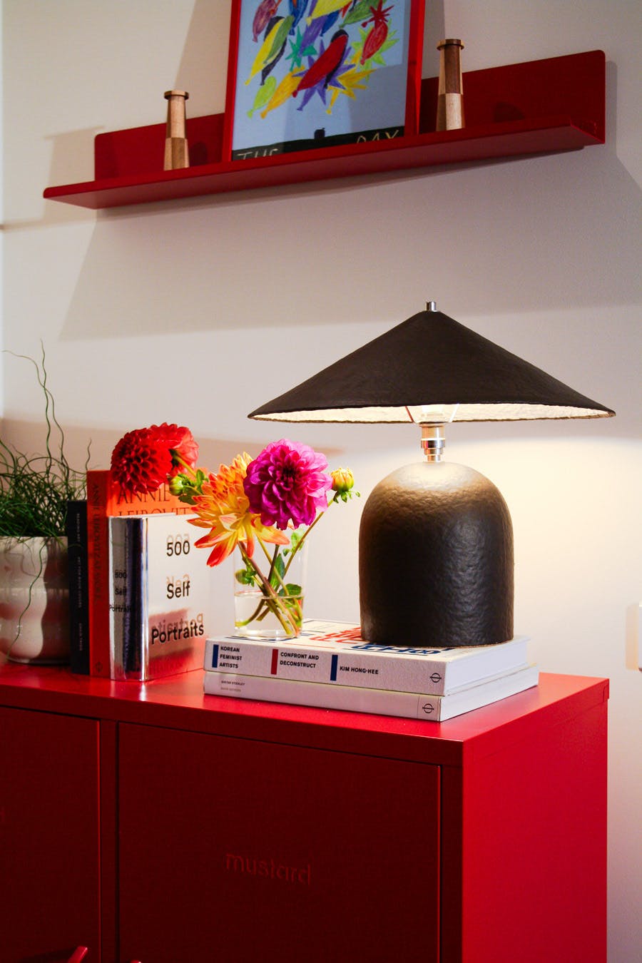 Palefire make my favourite lamps. They’re made from moulded paper pulp, they feel very mid-century to me in their silhouette but also contemporary and fresh with their other-worldy use of colour. We used the Pavillion Table Lamp in Clove in the living room and the Satellite Uplighter Lamp in Citrine in the bedroom.