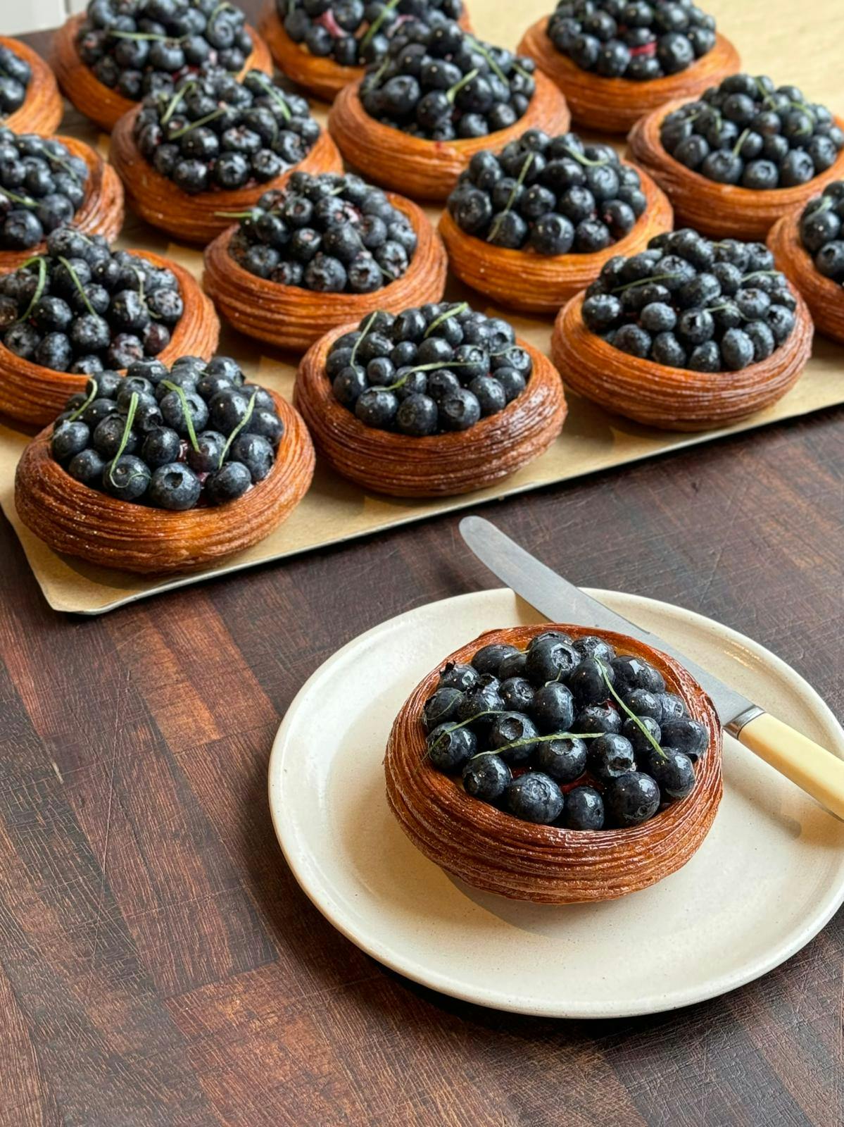 I grew up in a very health conscious, vegetarian household so when we had a treat it really was a treat! We used to go to the Loughs, the fantastic local bakers in Eyemouth for a pink iced bun. They were always my absolute favourite when I was little and I still adore them to this day. Scottish bakeries are full of gorgeous nostalgic pastries. From bright red glistening Scottish strawberry tarts, to tangy and proud pineapple tarts, wibbly wobbly pink custard slices, twisted sticky yum yums and well-fired rolls. I grew up eating these treats and the comfort and nostalgia that they made me feel is woven through the menu at Lannan. We’ve had all of the above on the menu throughout the two and a half years that we’ve been open. Our custard slice is a firm staple, seeing 20 liters of crème fraîche custard going into making them every single day.