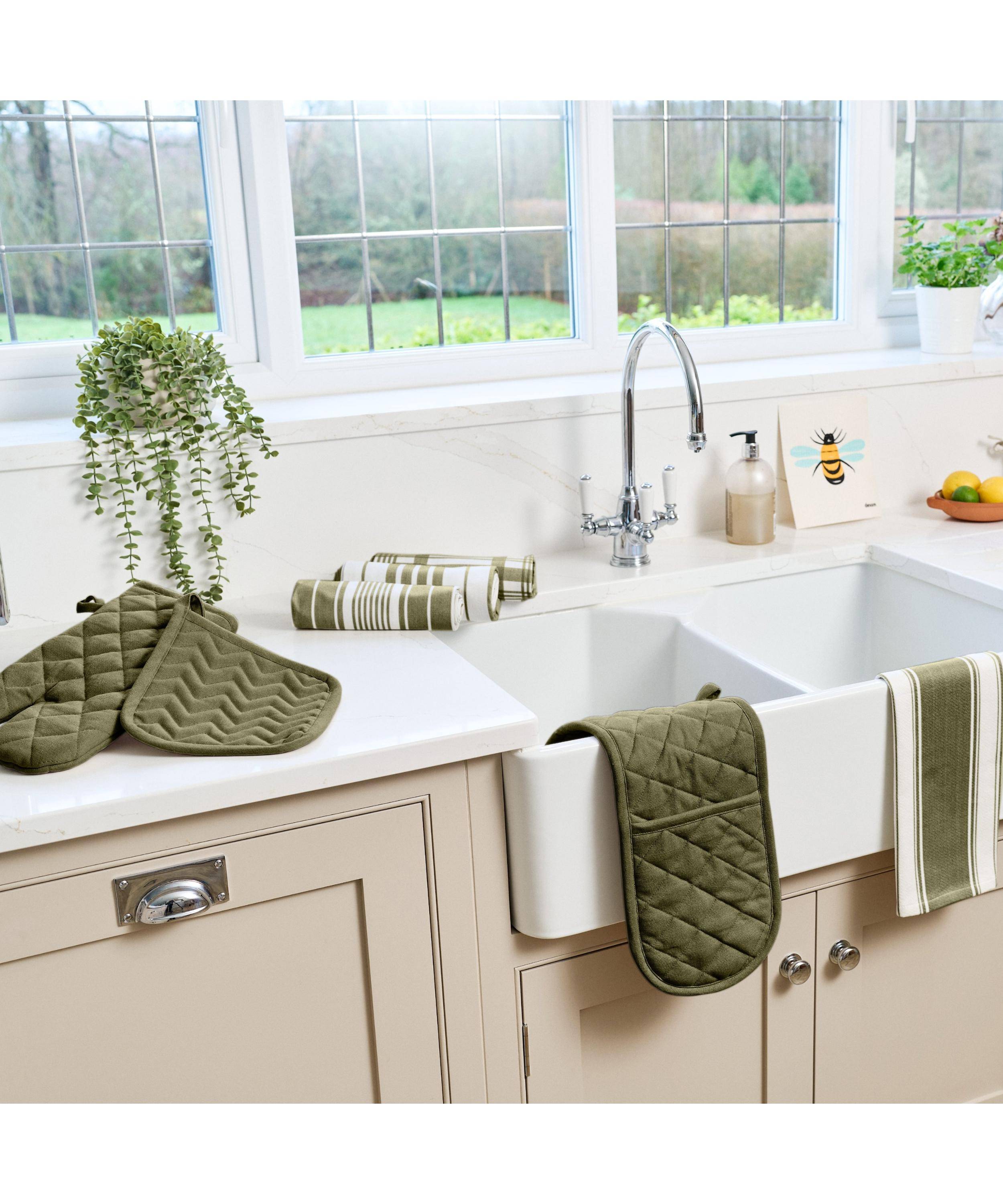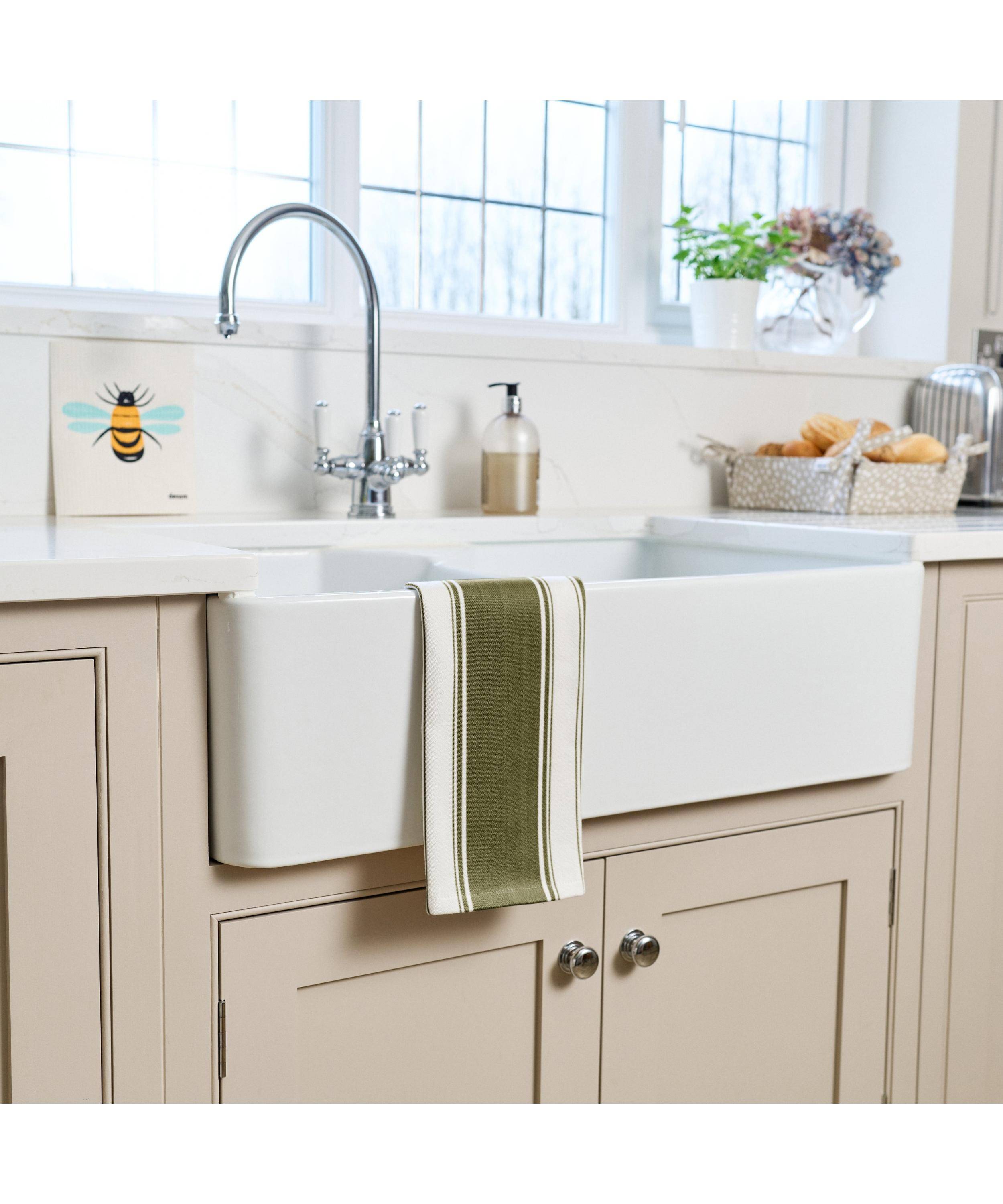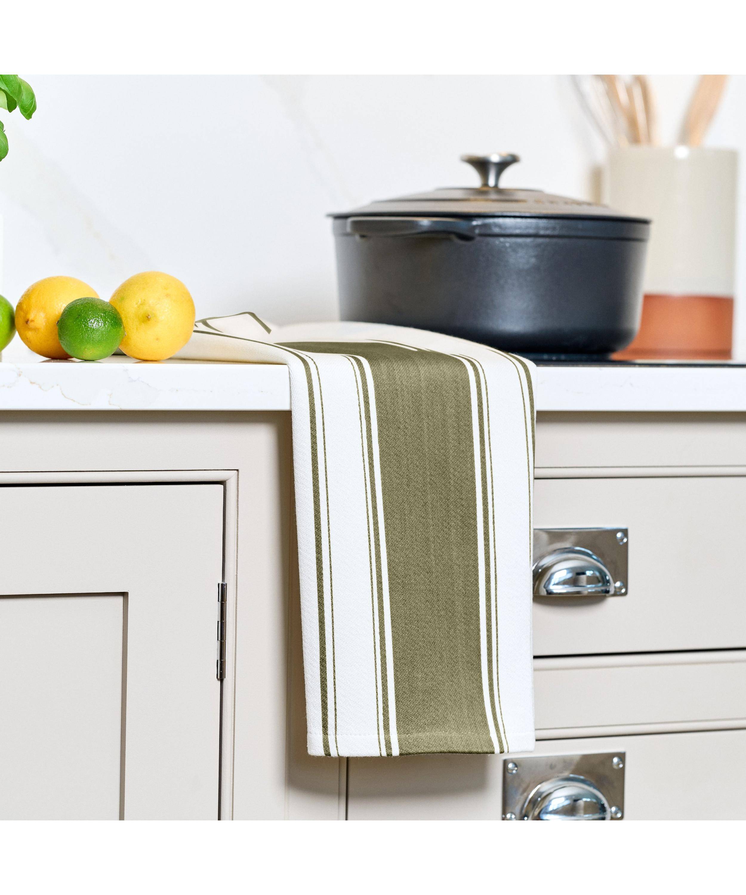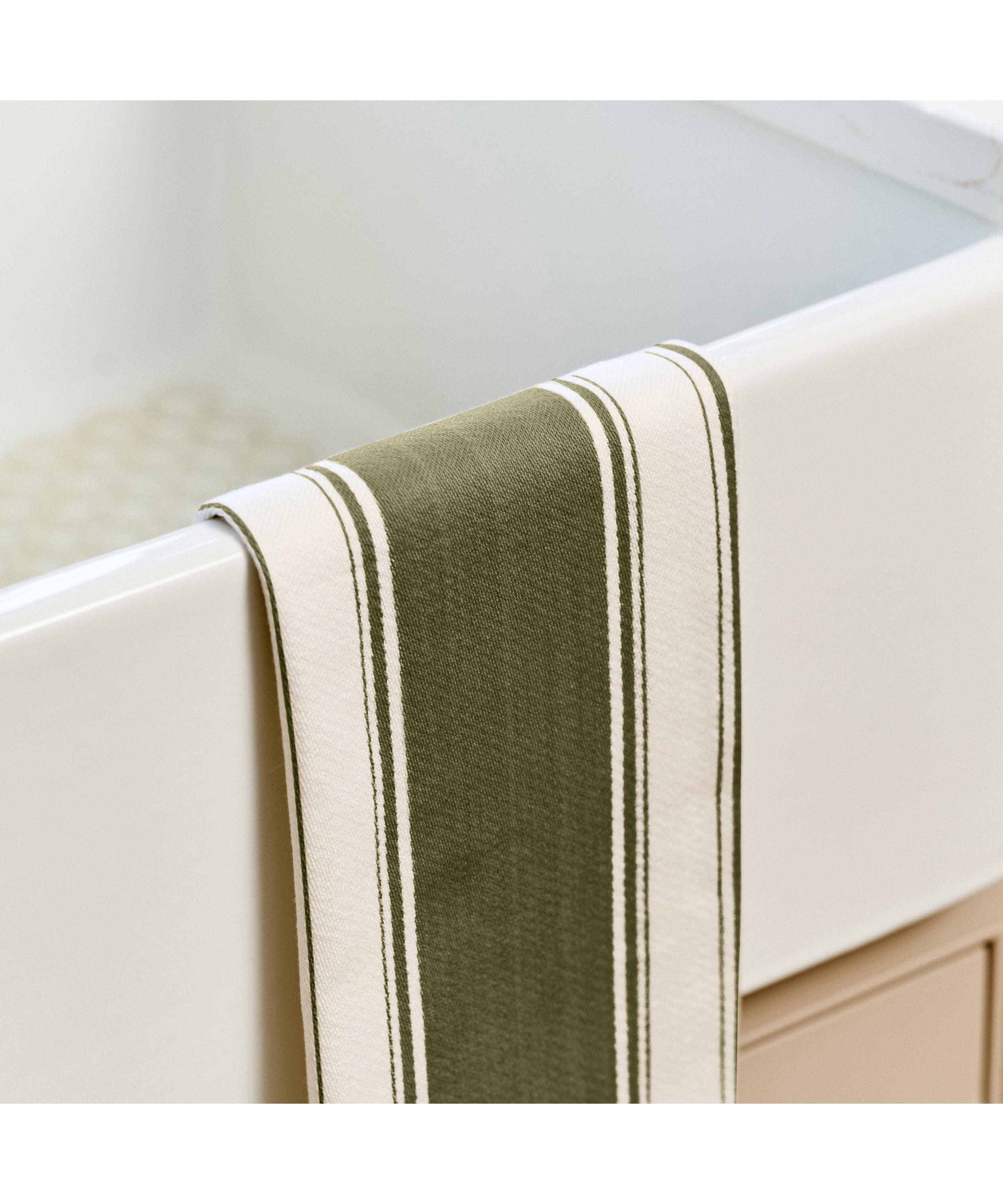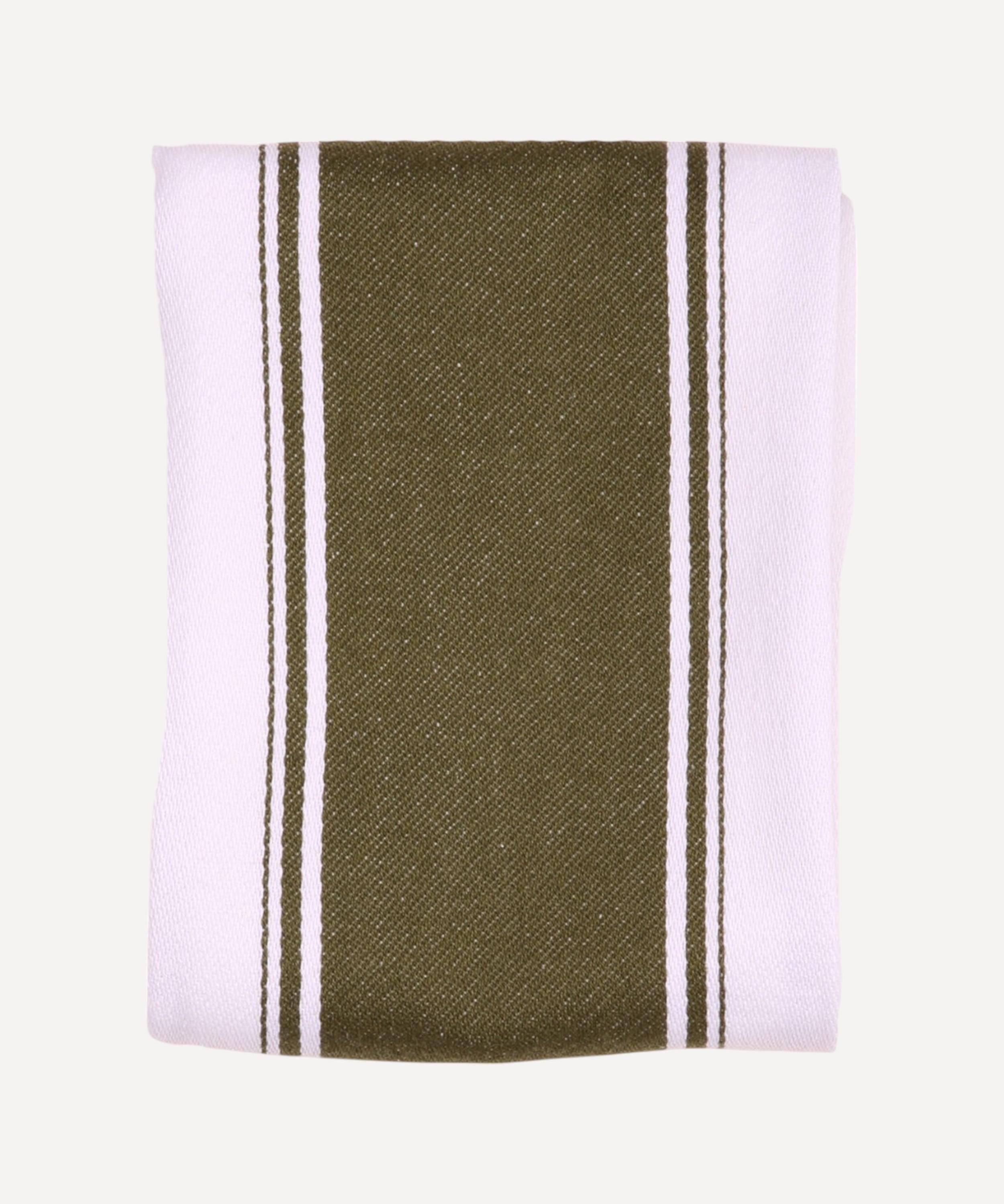 Dry up in style with this traditional striped tea towel. Inspired by earthy tones, and featuring an olive green stripe it is part of our Love Colour range. Made from 100% cotton and is great for drying your dishes. Machine wash at 40 C with similar colours.