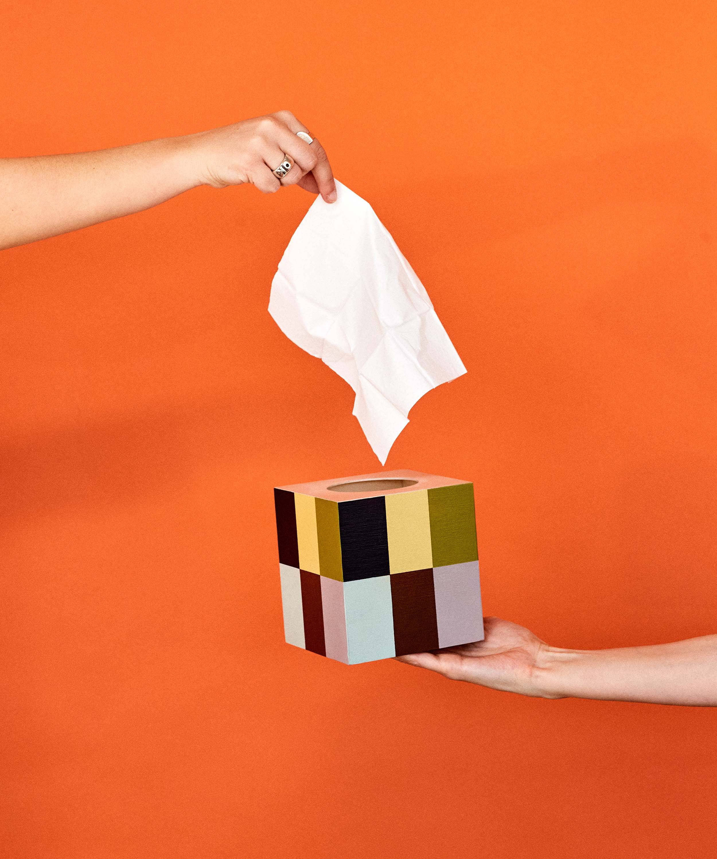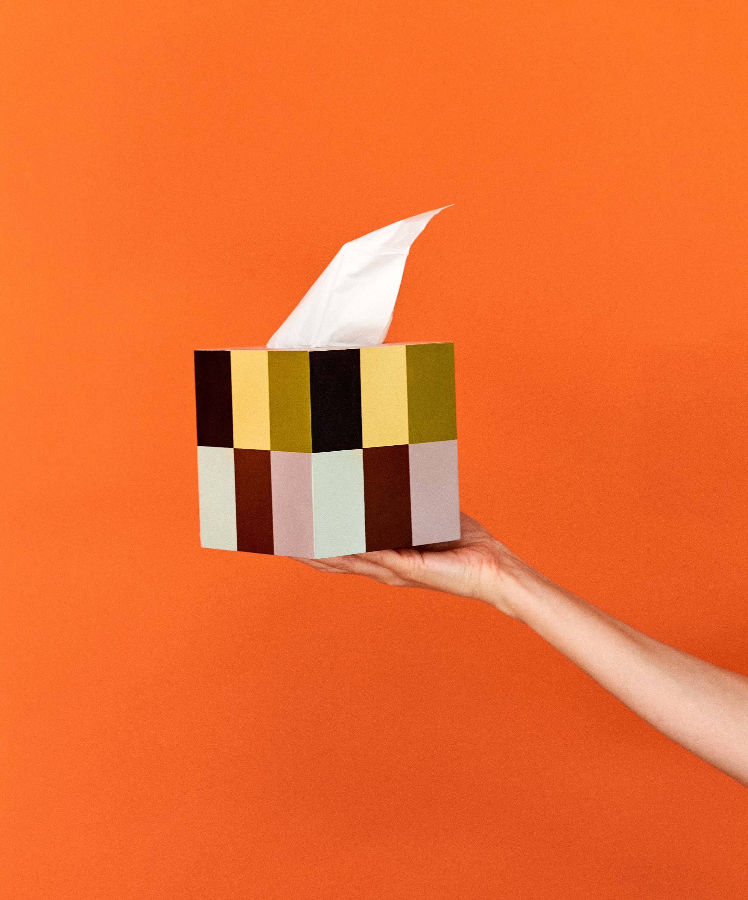 Wooden tissue box cover, hand painted in muted Rainbow shades with a gloss finish Made to order (therefore non-refundable) & delivery time is 2-4 weeks