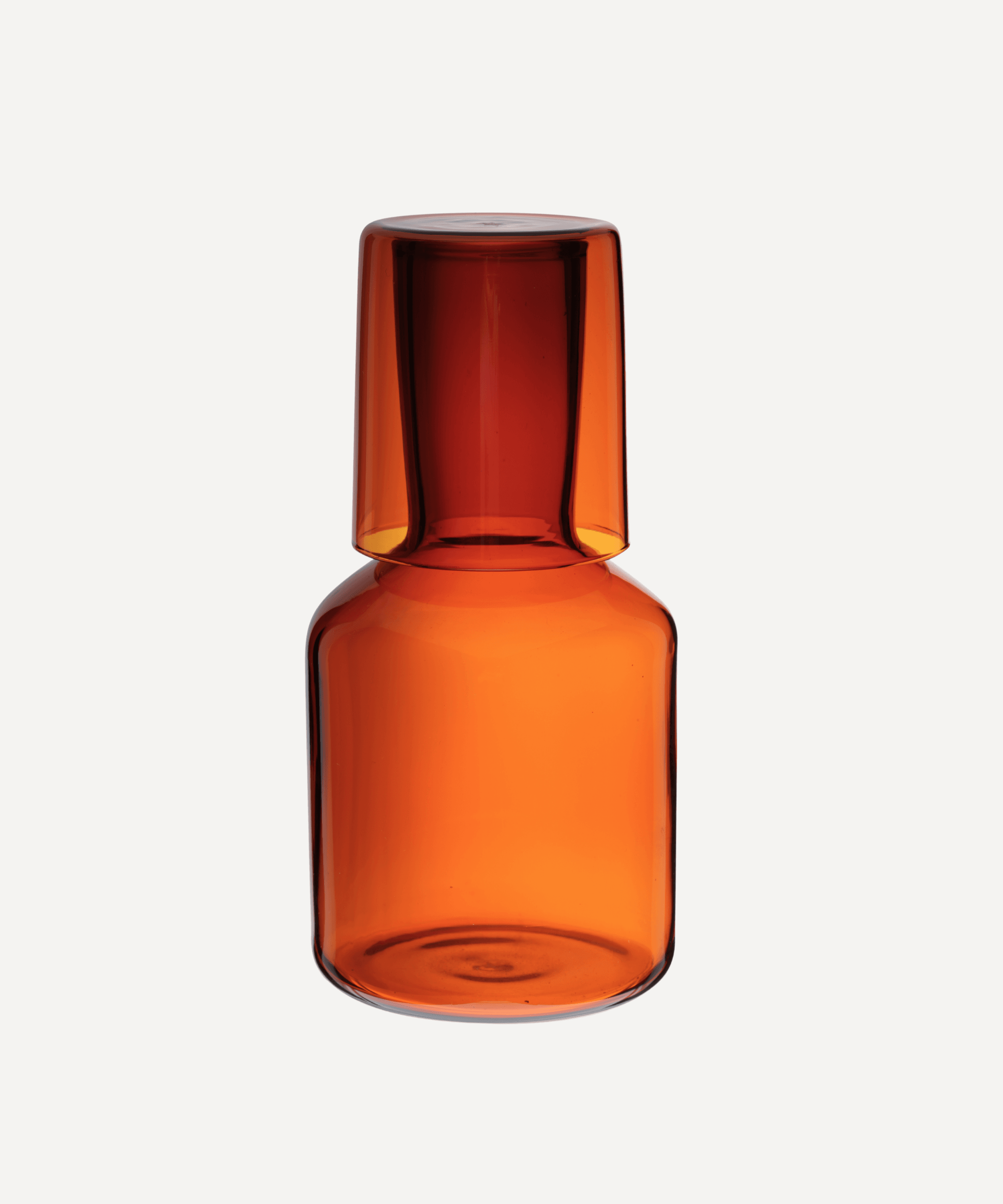 The J’ai Soif carafe and tumbler are expertly crafted from amber Borosilicate glass, inspired by the traditional drinkware sets displayed on bedside tables in France. The J’ai Soif carafes' sophisticated design lines and bold colour add extraordinary pleasure to the simple act of drinking water.