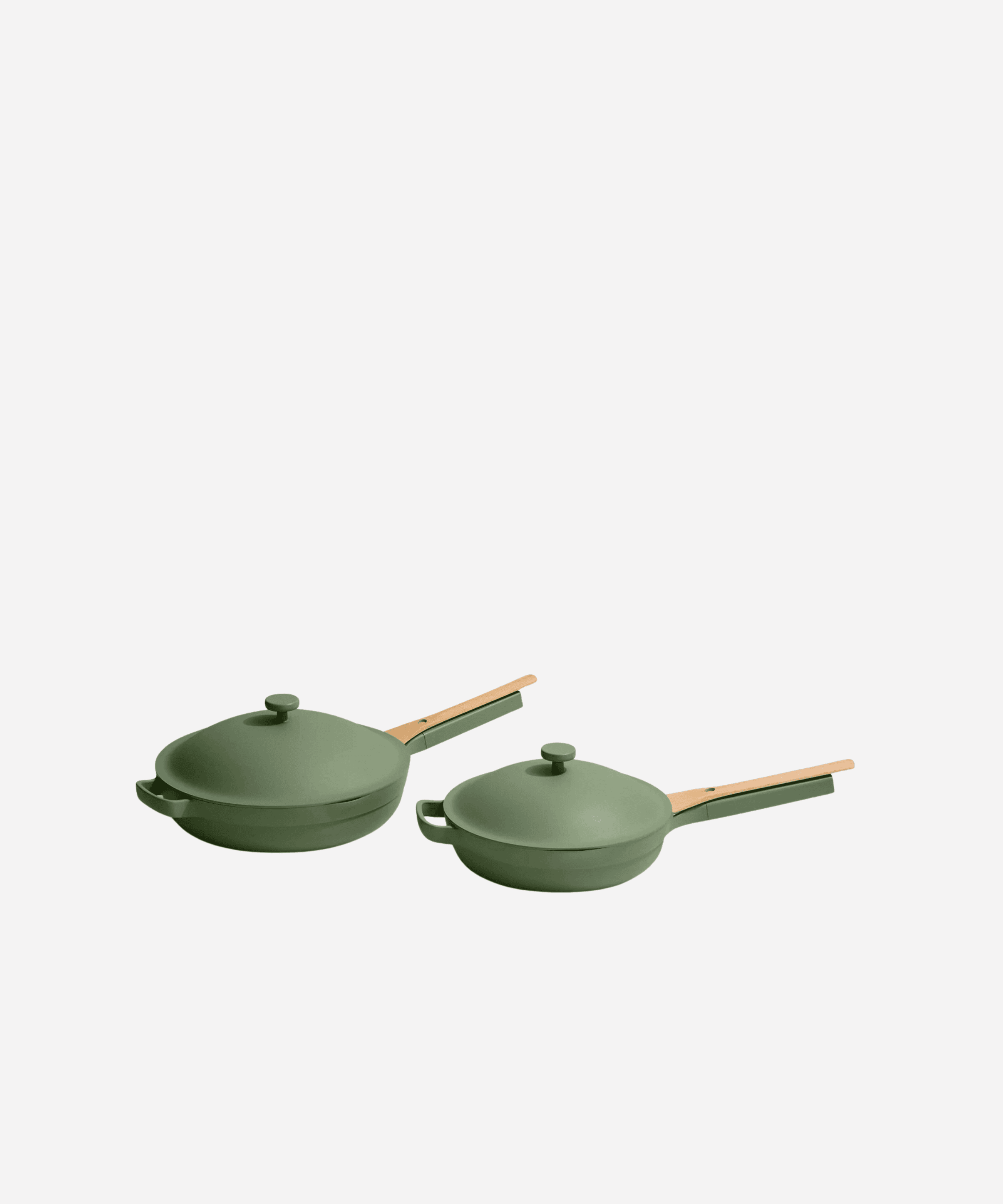 Transform your everyday cooking with the Always Pan Duo by Our Place, a best-selling cookware set designed for versatility, sustainability, and style. This bundle includes the classic Always Pan 2.0 (25.5 cm) and the Large Always Pan (31.8 cm) — two thoughtfully crafted non-toxic ceramic pans that replace multiple pieces of traditional cookware.