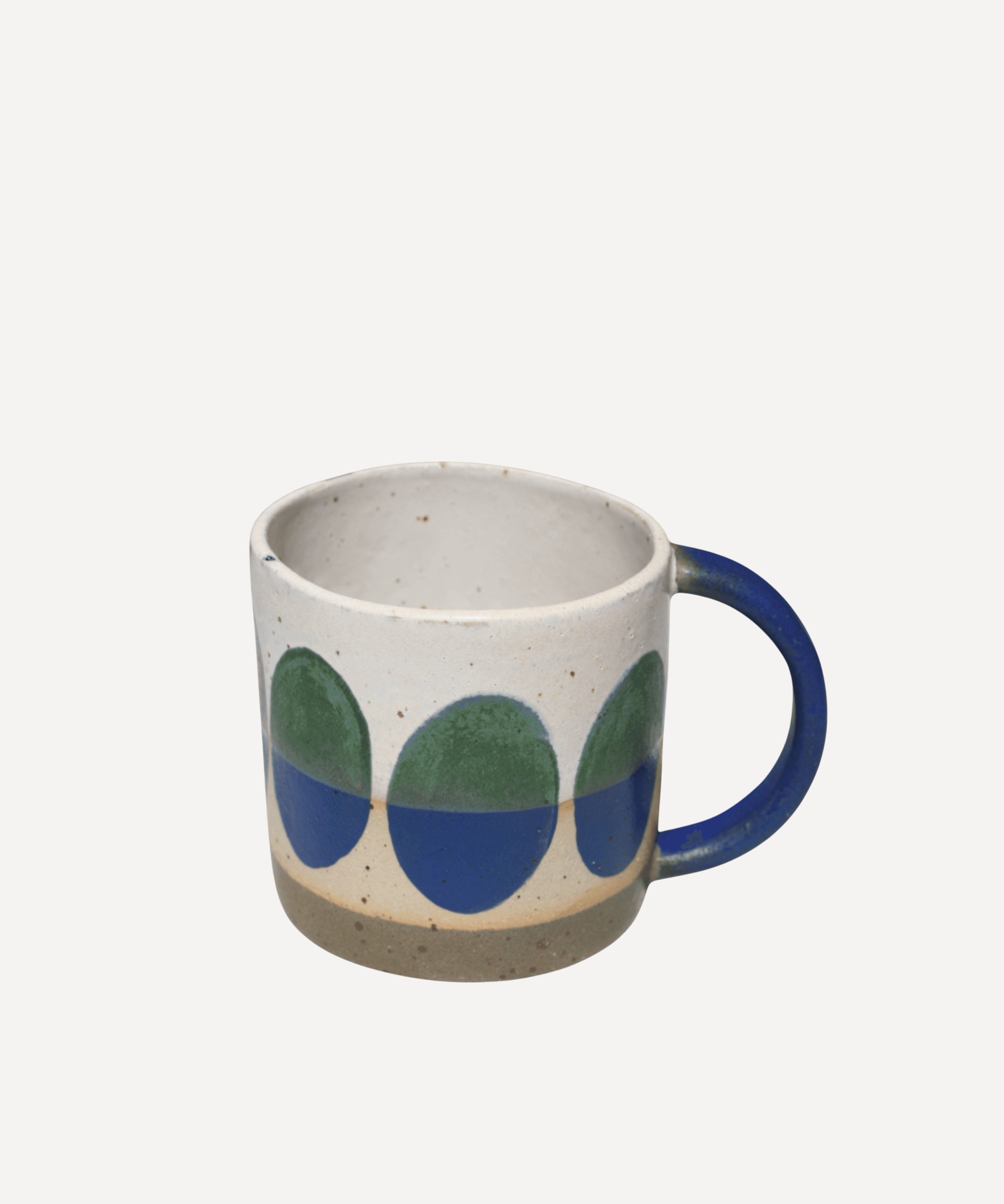 Enjoy your morning brew in artistic style with these Blue Dot Mugs by Sophie Alda. Handcrafted in ceramic, each mug features a glossy white interior that contrasts beautifully with the playful blue dot exterior. At approx 10 × 14 × 9 cm, they’re generous in size yet elegant on the table — and their handmade nature means every piece carries subtle variations that make it uniquely yours. A design-led mug that’s equally perfect for everyday use or thoughtful gifting.