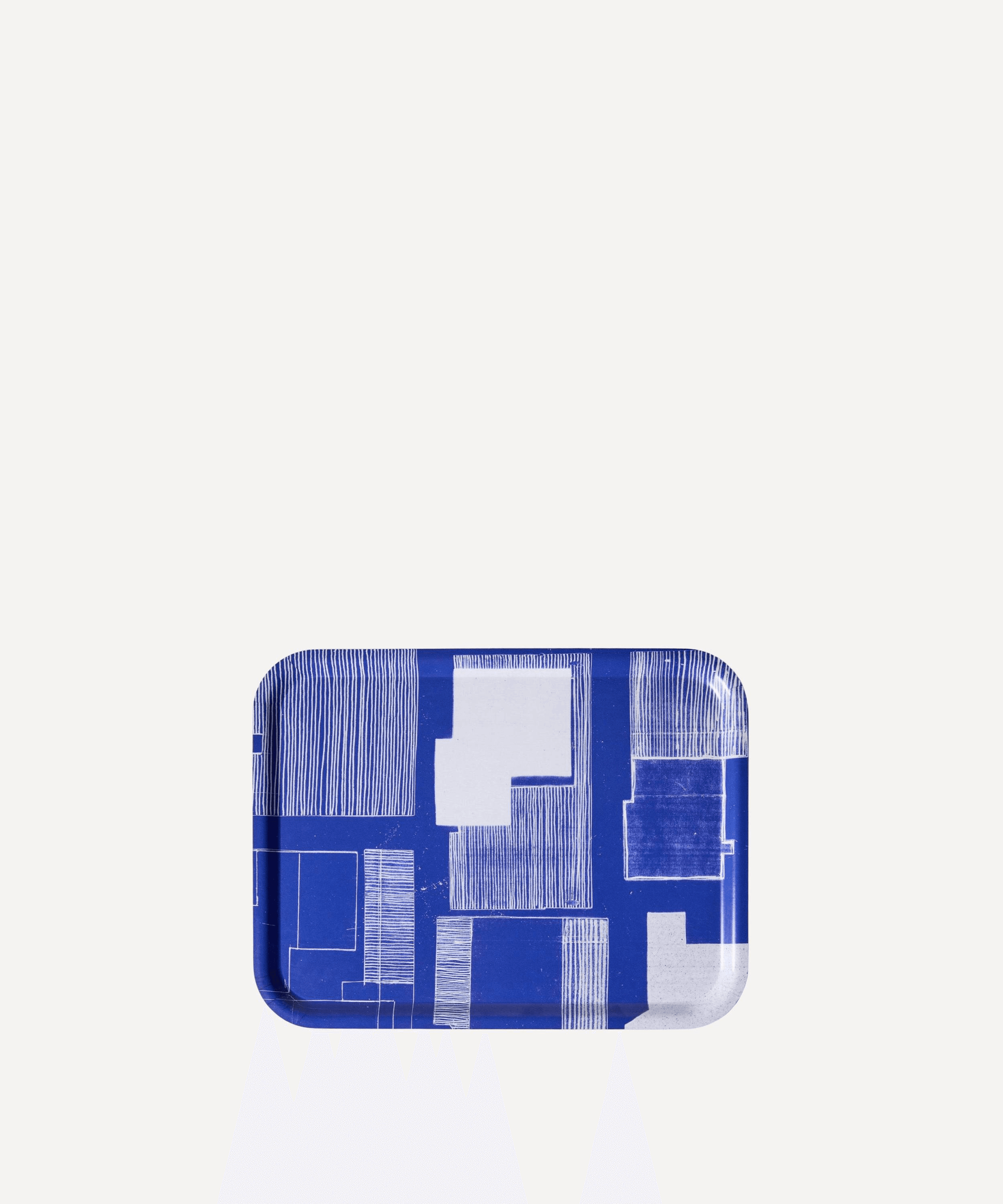 Designed by artist and printmaker Stephen Dow through his studio heraldblack, the Blueprint 2 Tray features a striking etched geometric patterned print in blue and white colourways.