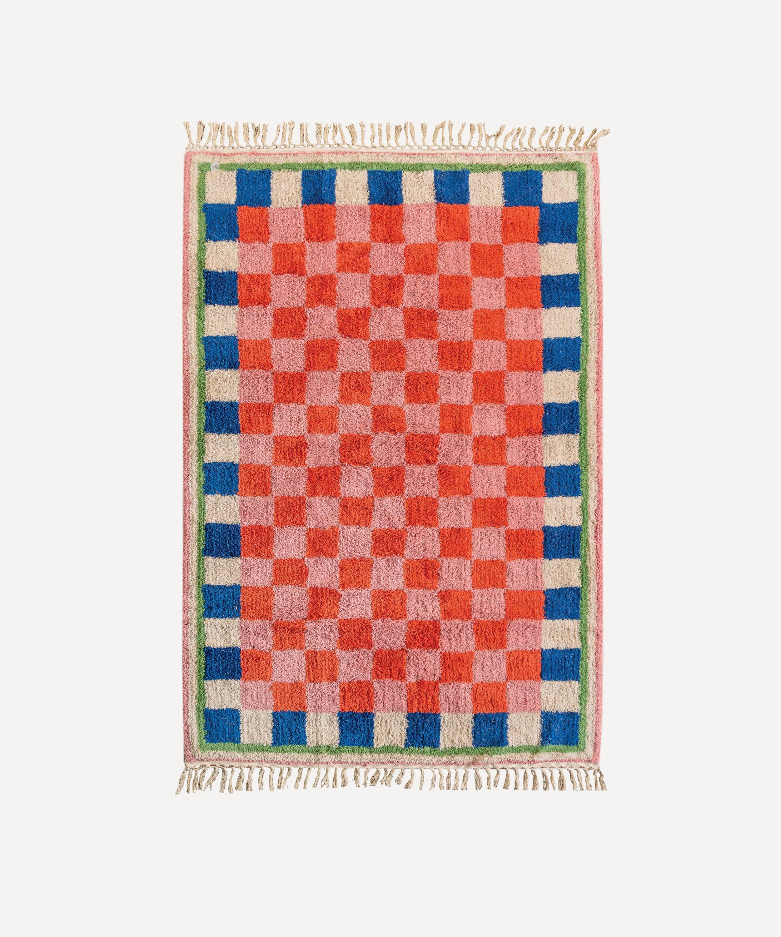 - Lizzie Pink & Red Chequered Recycled Cotton Medium Rug