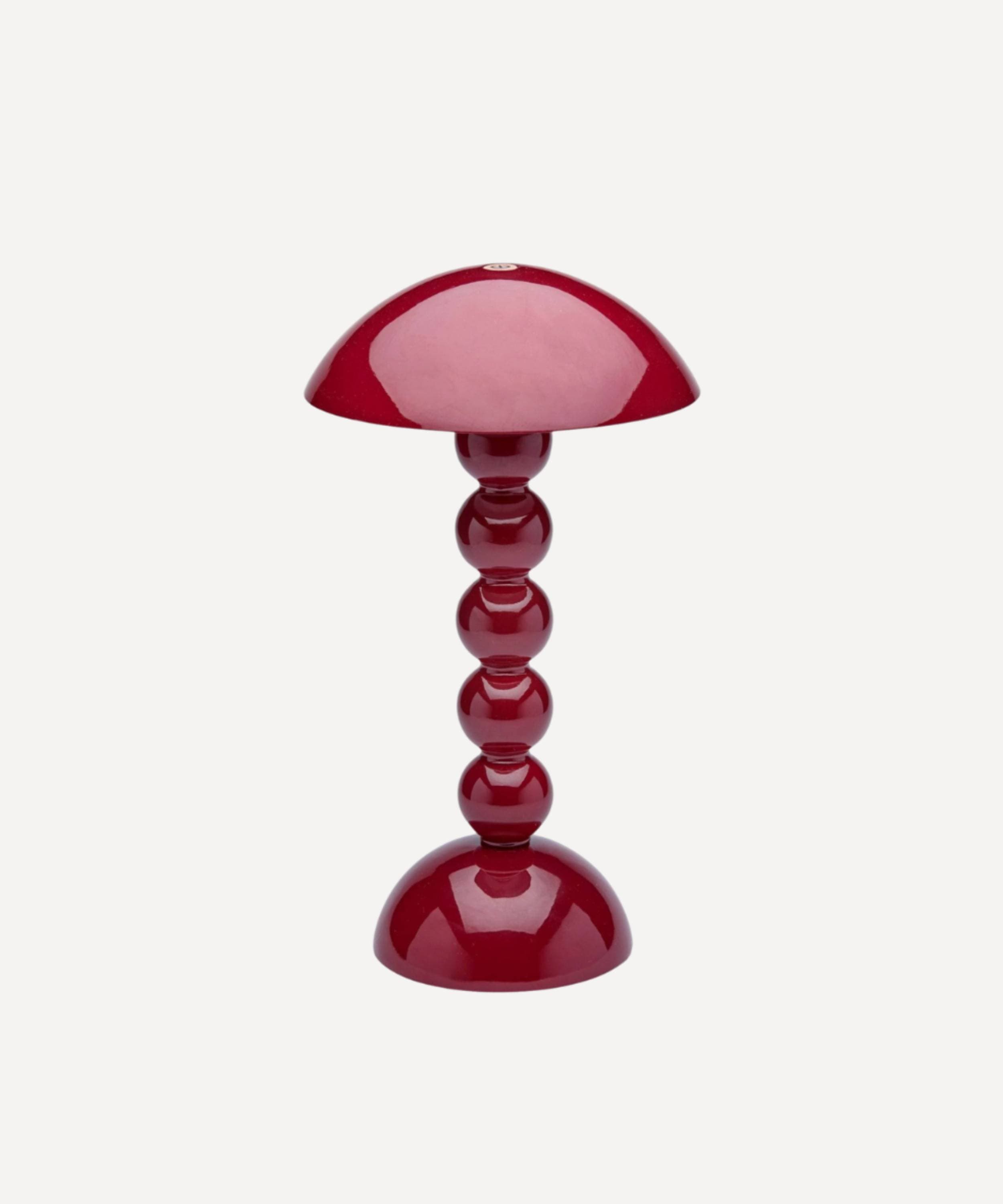 This Cherry one-of-a-kind lamp features a Bobbin-Shaped design. It offers up to 10 hours of battery life on its brightest setting and has three adjustable light levels.Finished with 10 coats of lacquer for a glossy, luxurious look, it comes gift-boxed and includes a charging cable for easy recharging. The unique and versatile lamp can be used as a portable or stationary lighting feature.Comes with a USB-USB C charging cable. Tap the button on the top to activate the LED Lamp. Height 30cm, Diameter 16cm.