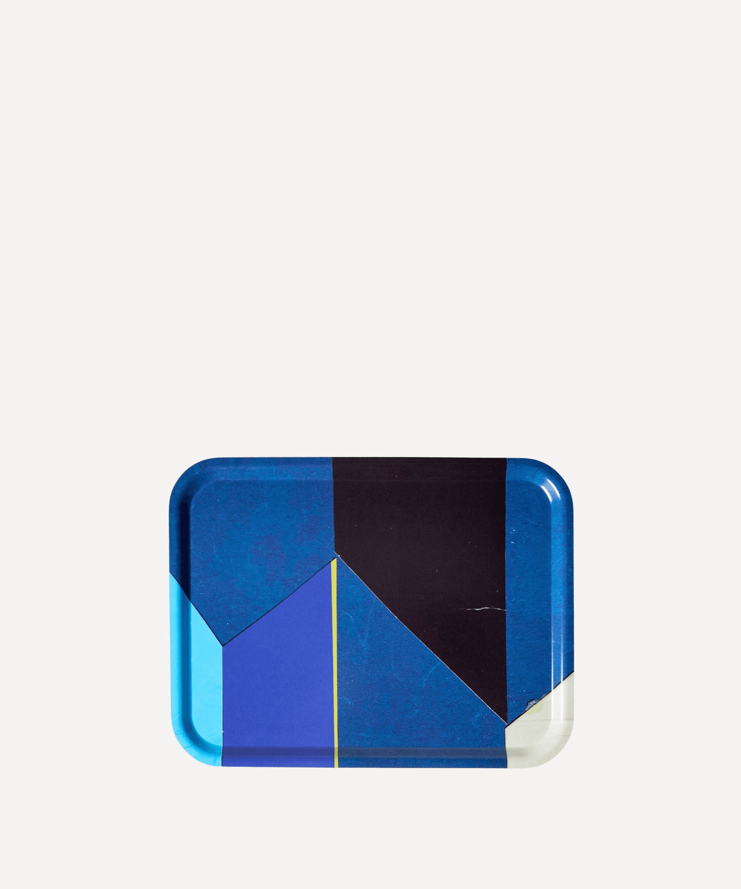 Designed by artist and printmaker Stephen Dow through his studio heraldblack, the Constantin 11 Tray features a geometric patterned print in striking black and blue colourways.