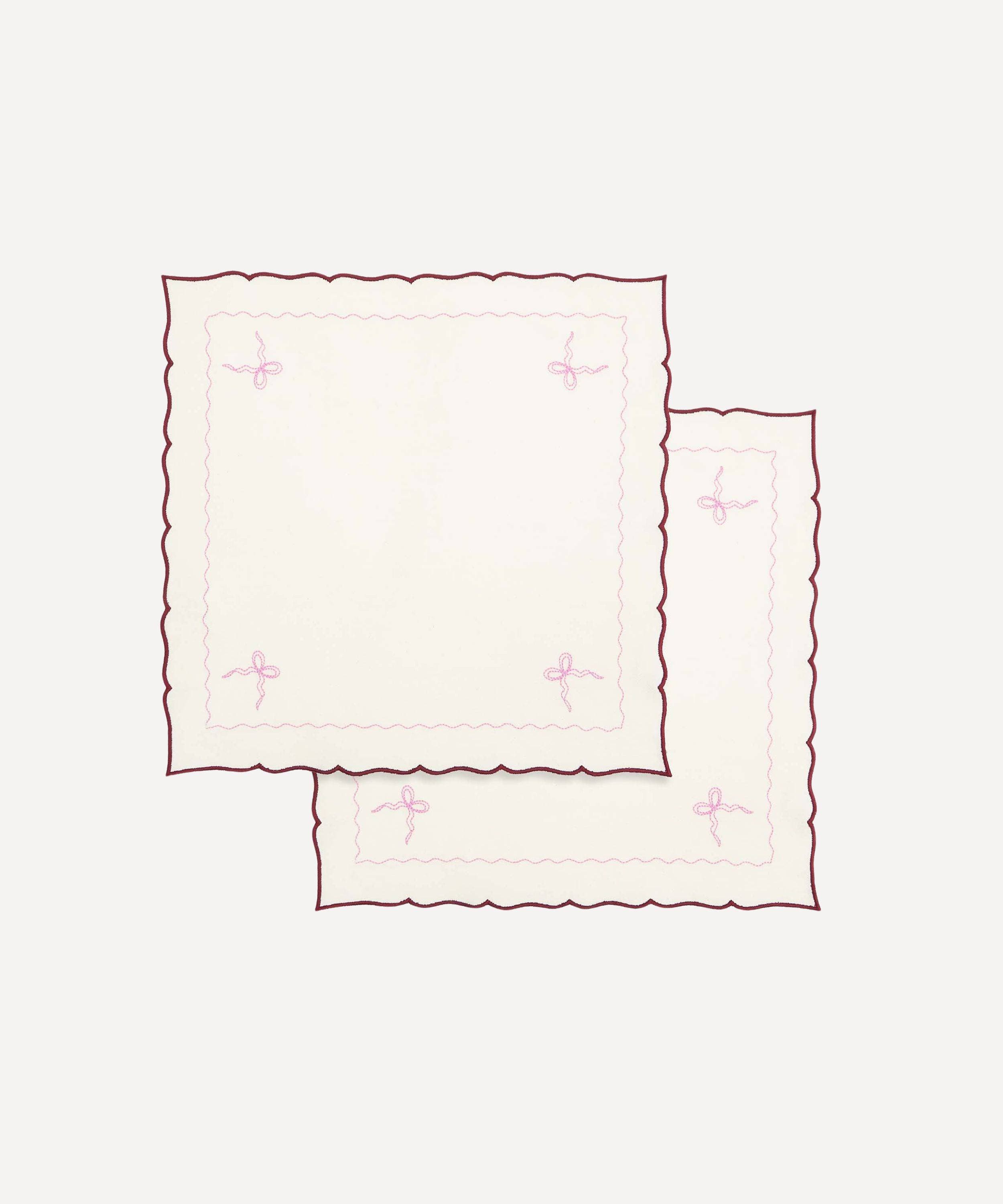 Embroidered Bow Napkins, Set of 2 - Burgundy