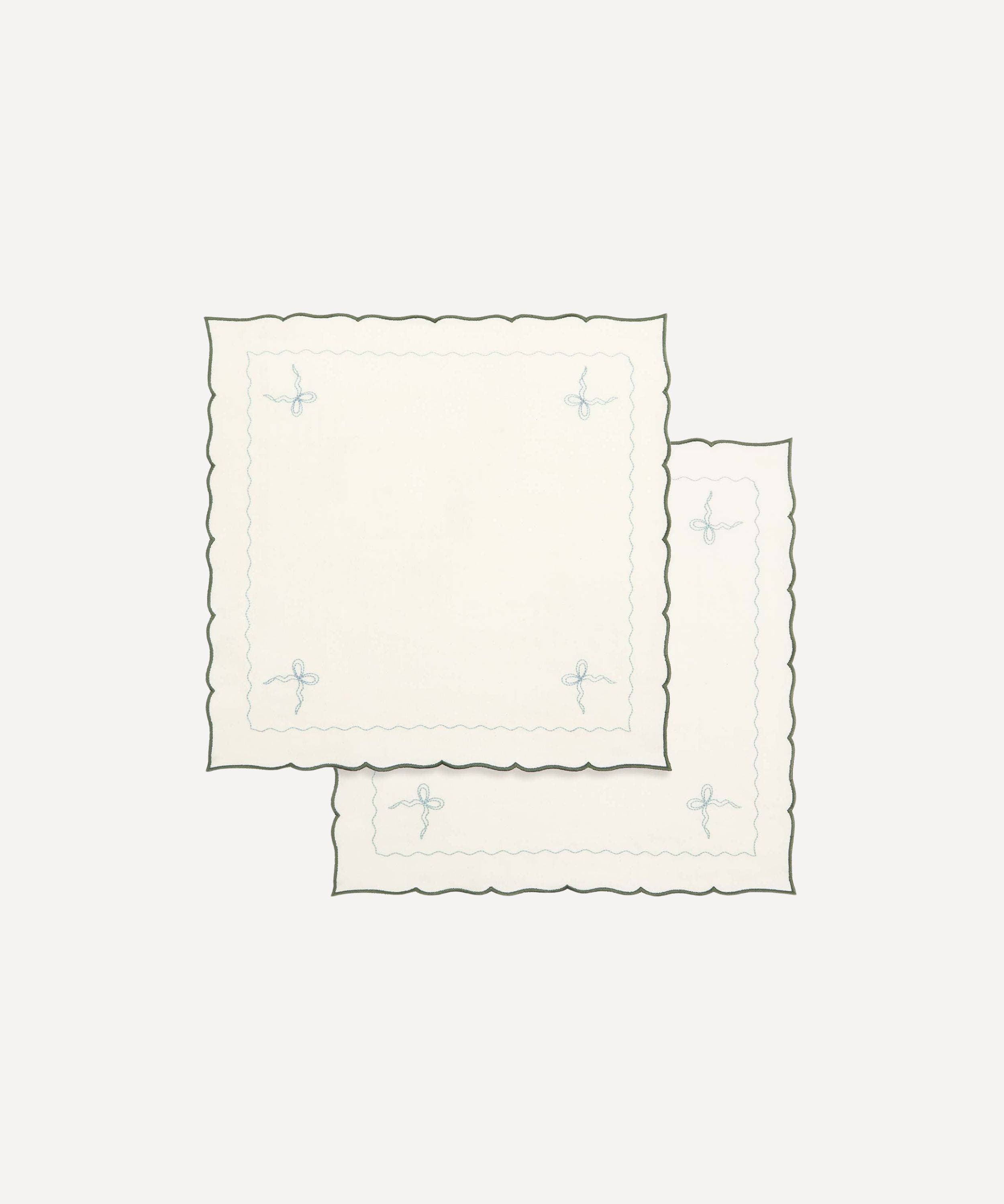 Embroidered Bow Napkins, Set of 2 - Dark Green