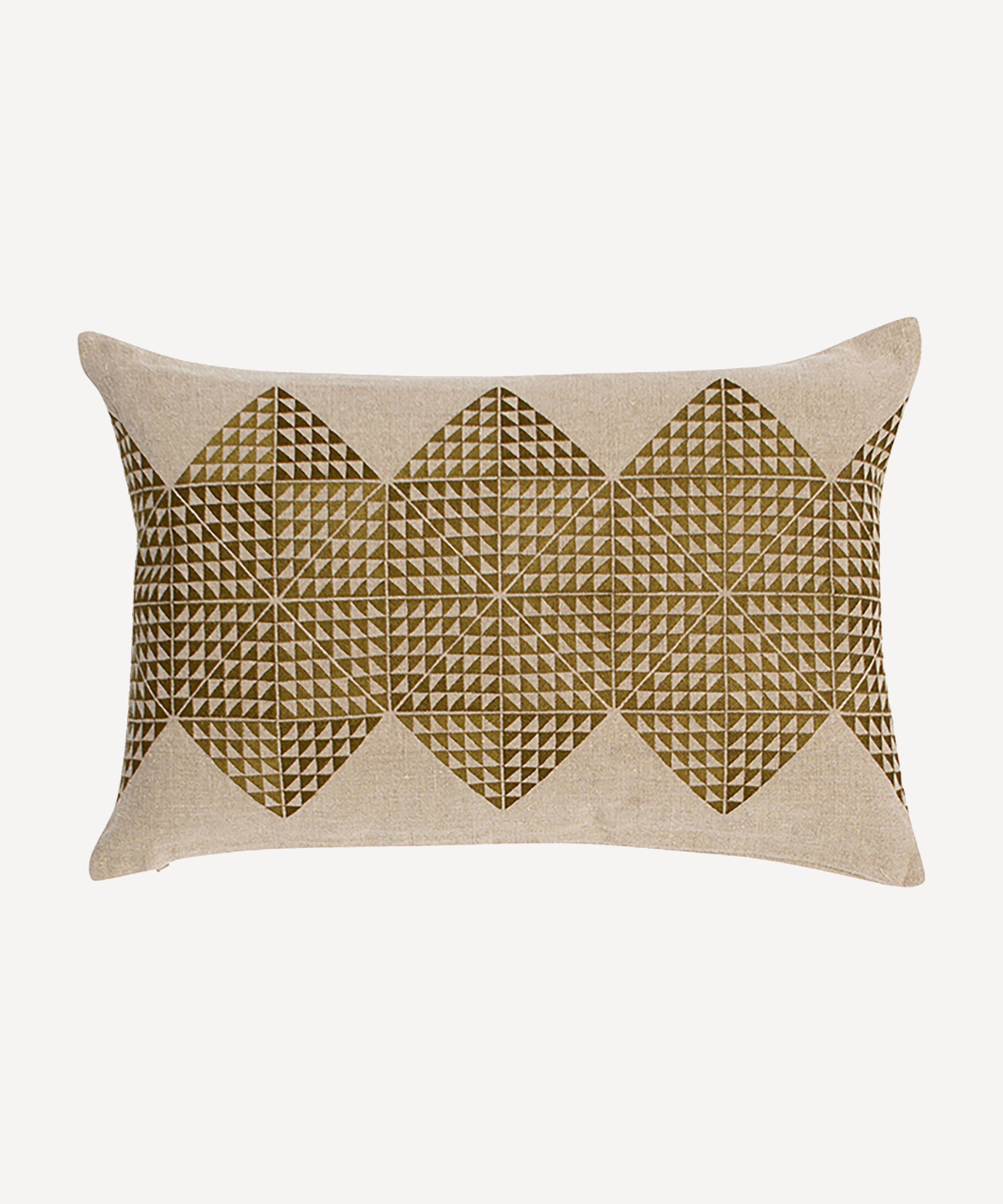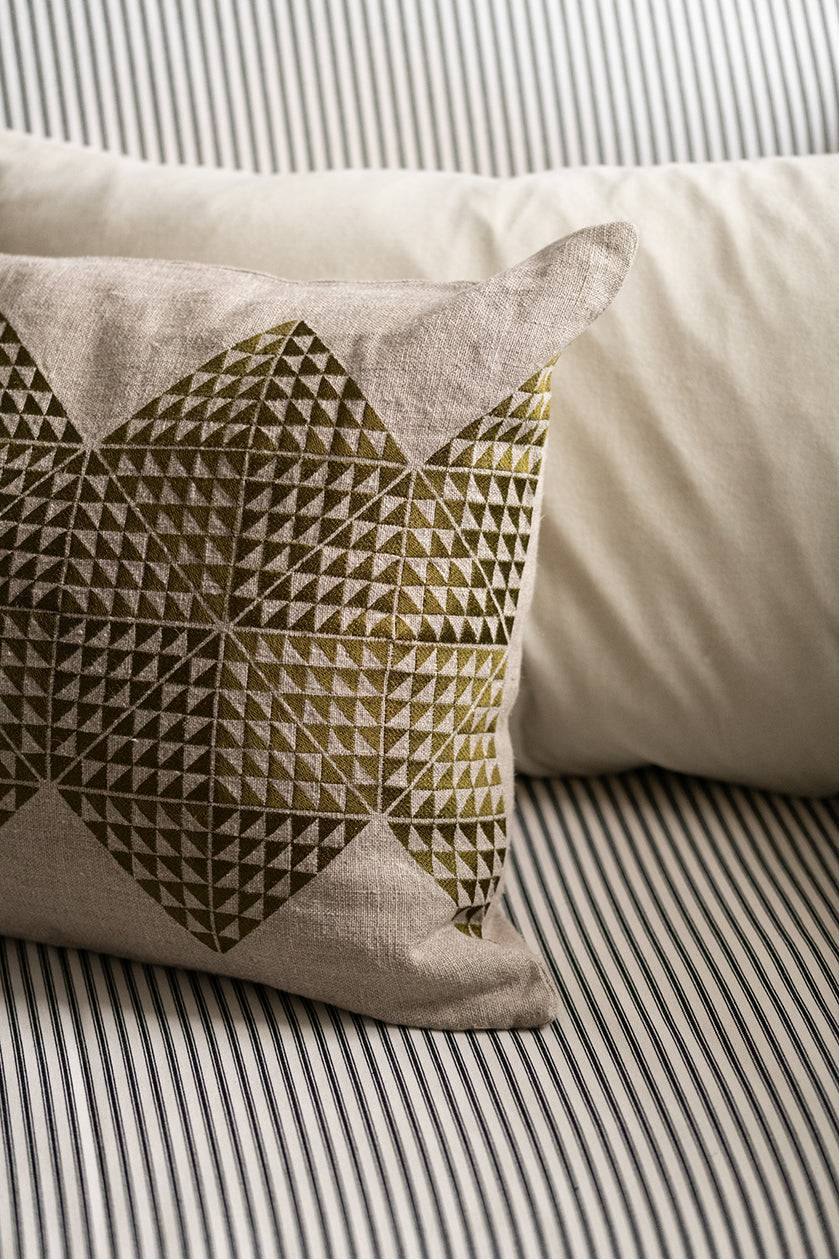 - Geotile Cushion Cover (Olive & Natural Linen)