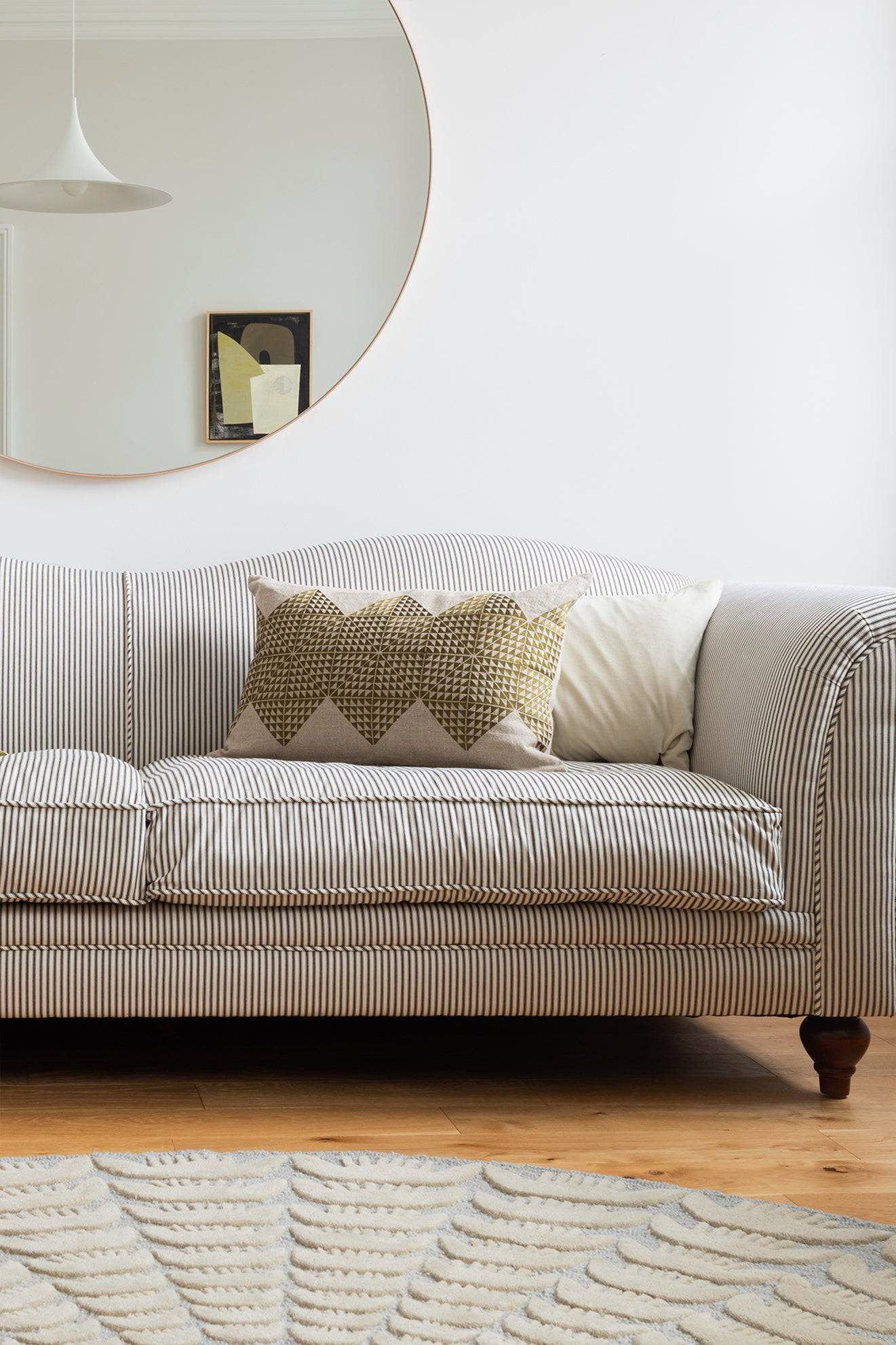 These striking geometric cushions are inspired by ancient Roman mosaics. Each cushion is embroidered as a placement design with mercerised cotton, creating a textural contrast between the sheen of the embroidery and the matt of the linen base cloth. The ancient roots of the intricate embroidery motif creates a cushion that works equally well in both contemporary and traditional interiors.