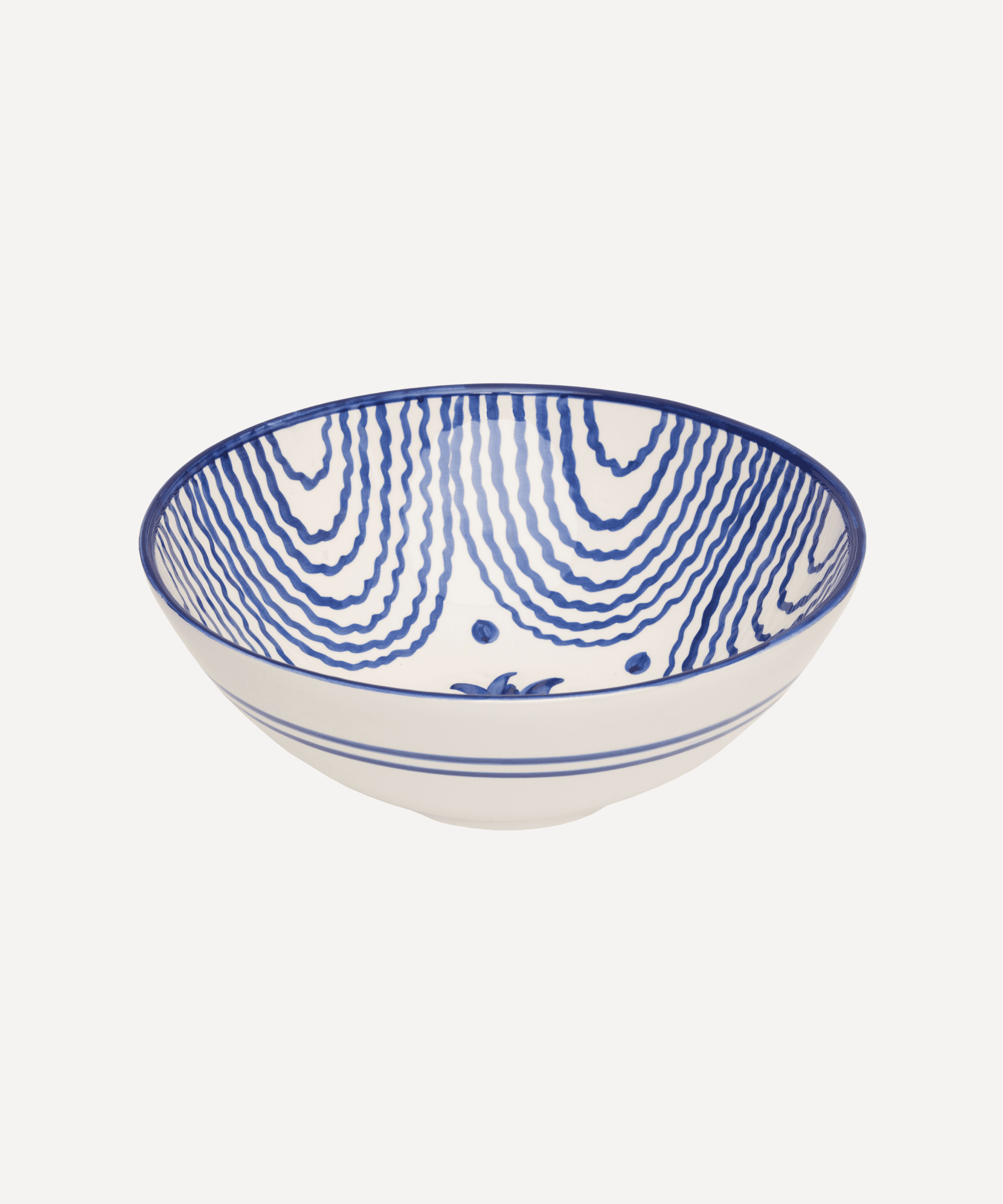 Hand-painted large blue serving bowl, with a design inspired by antique, collectable 'lebrillo' bowls.