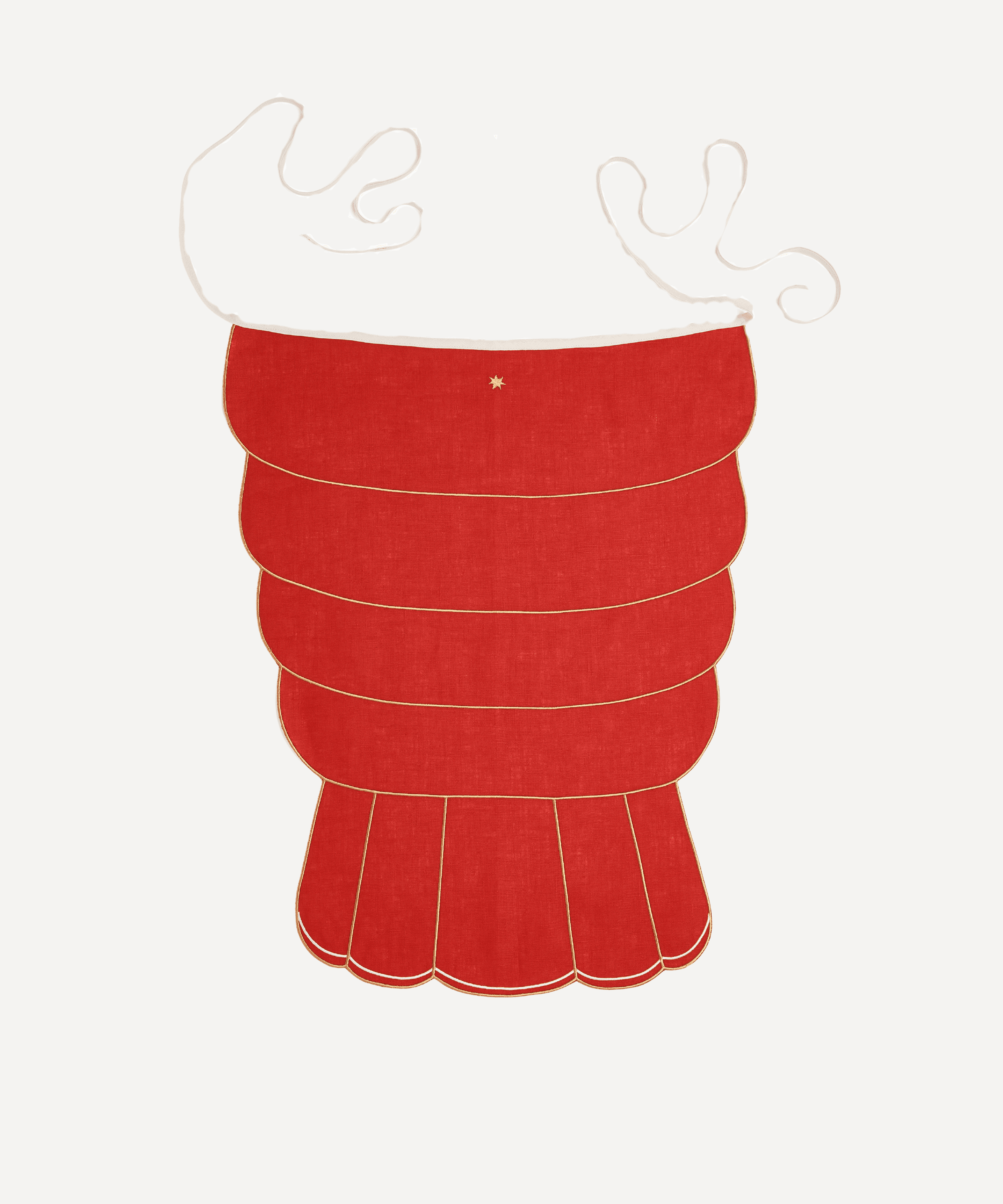 There are aprons and there is THE lobster apron! First of its kind, we imagined a trompe l'oeil topless pinafore in the shape of a lobster tail, providing the most stylish outfit while cooking up a storm for your guests. If they arrive early, no problem. You are already dressed up and looking dashing.
