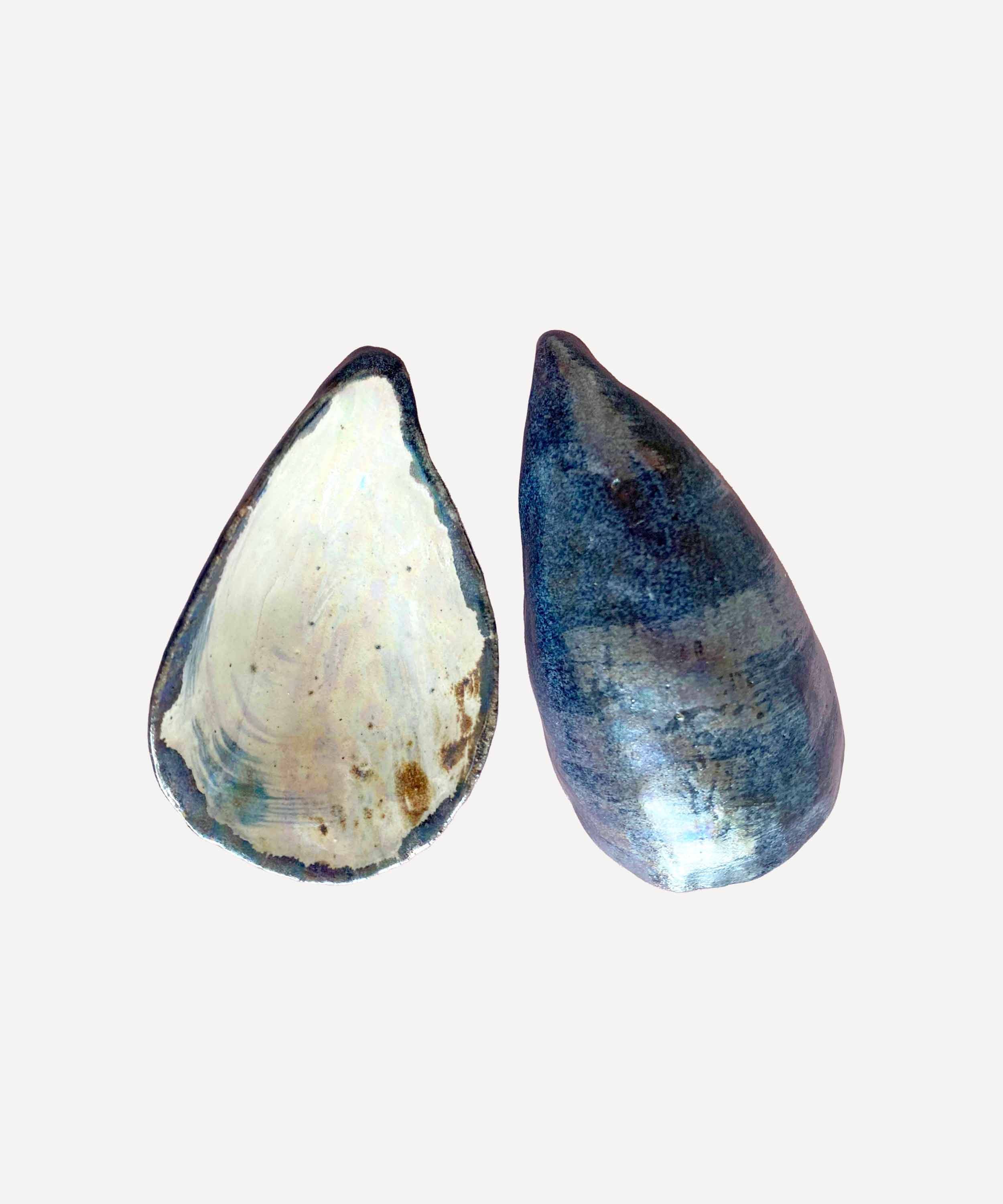 Hand-formed single ceramic mussel shell pinch pot, sold individually.