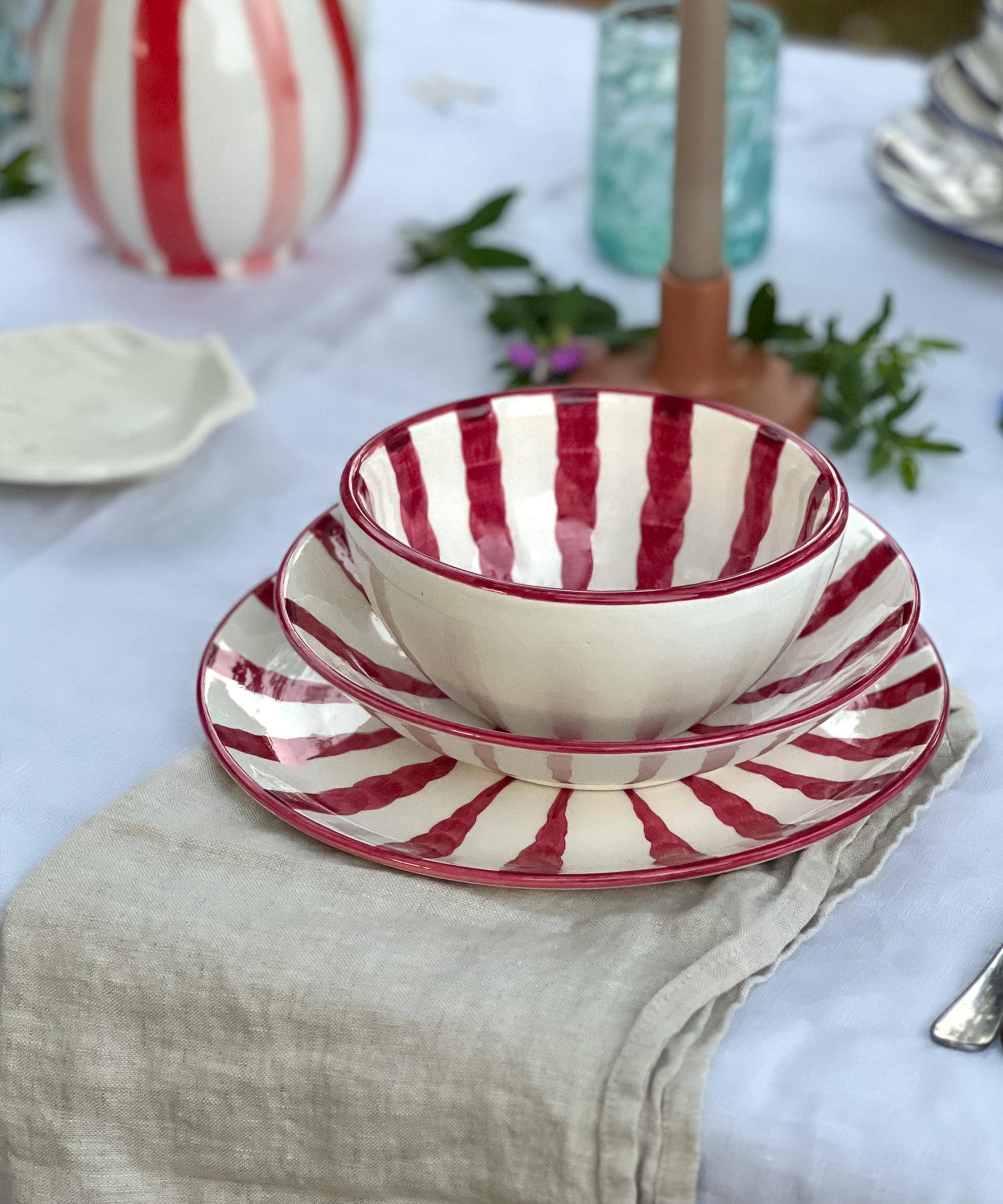 Inspired by the dynamic and colourful Spanish coast of Valencia, where the ceramics are handmade in a small family-run workshop. The warm shades mirroring the bright umbrellas that line the beaches. A collection to to be enjoyed at your leisure, all year round.