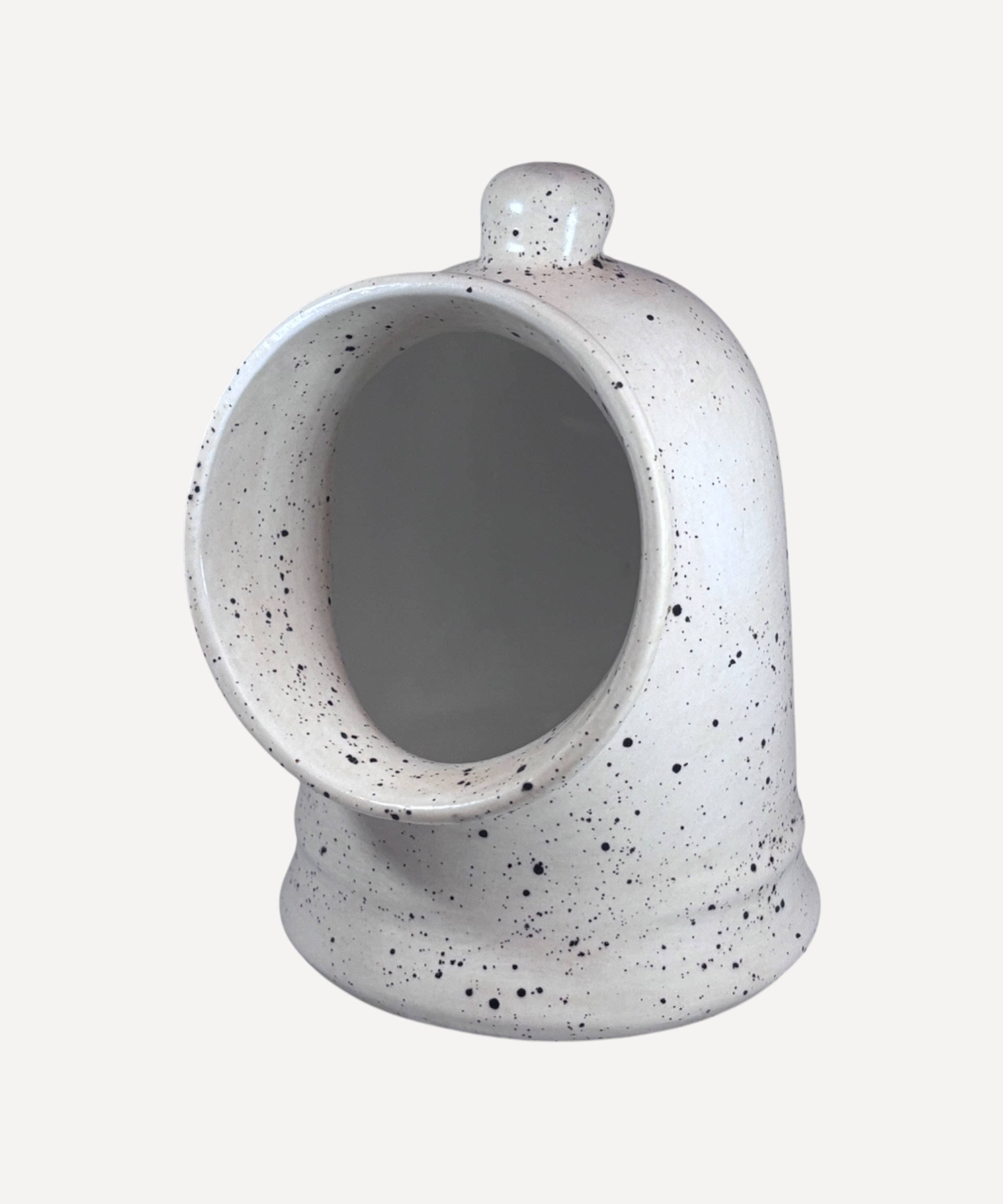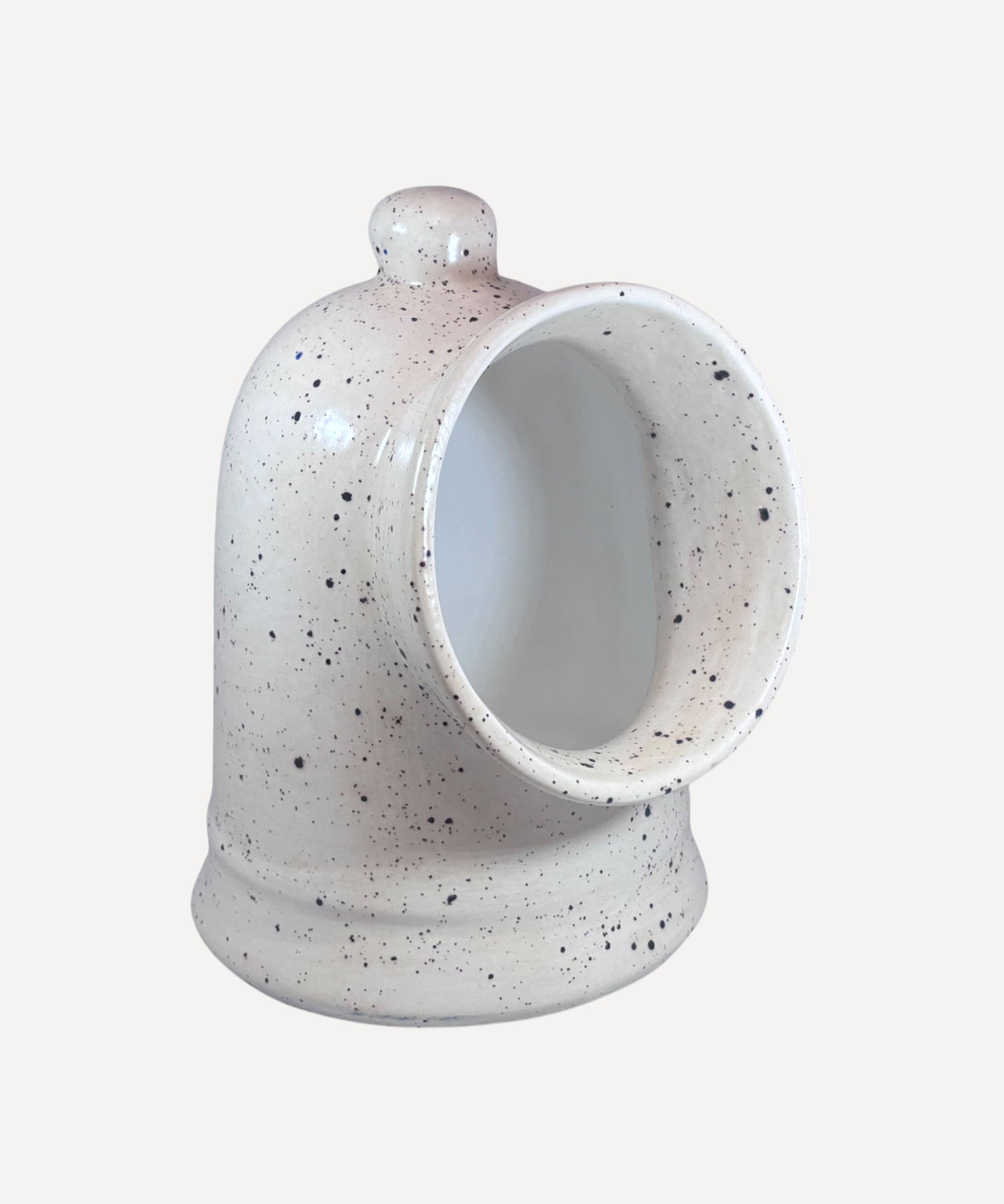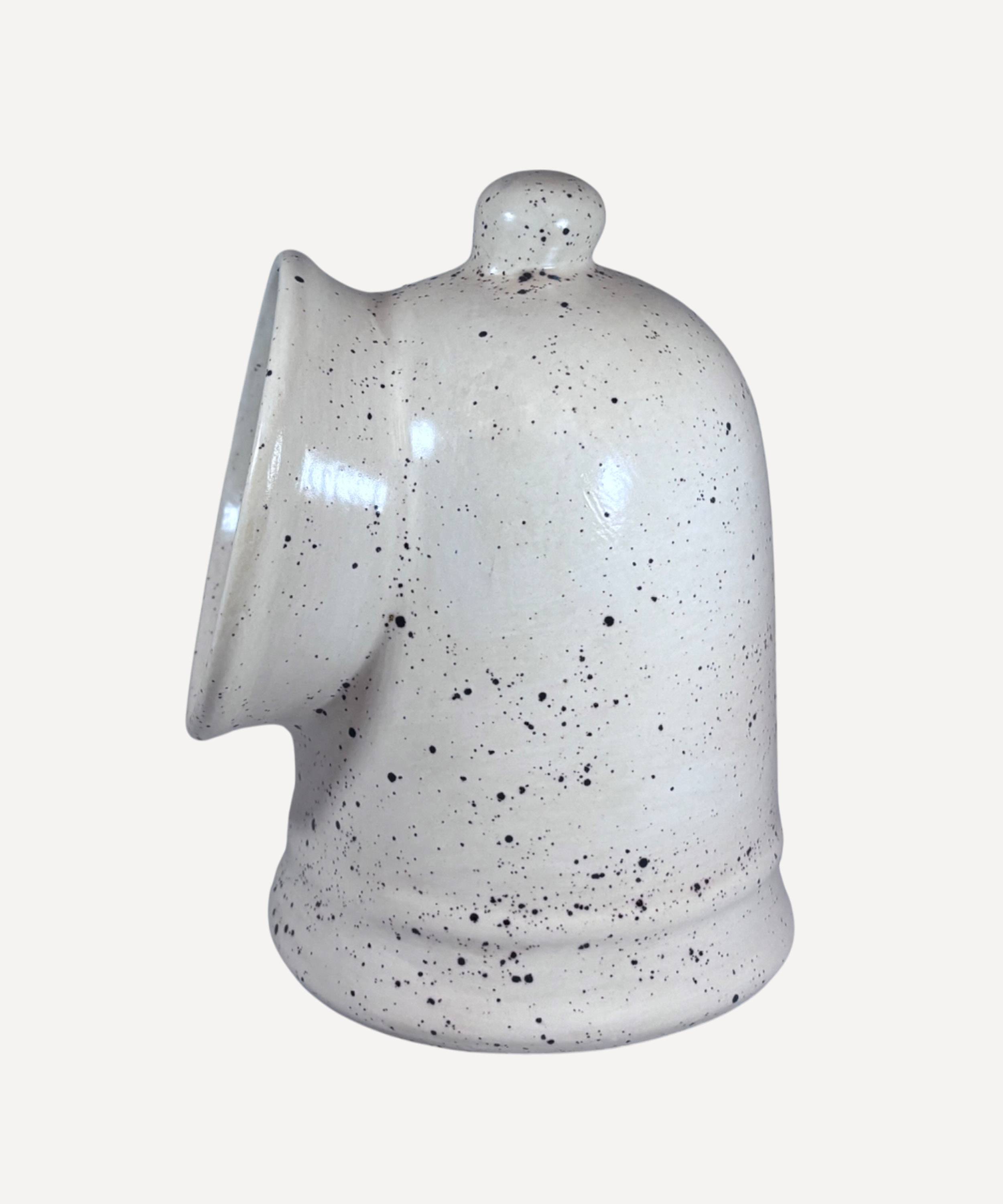 Handmade Salt Pig in a speckled blue and white glaze is earthenware pottery.