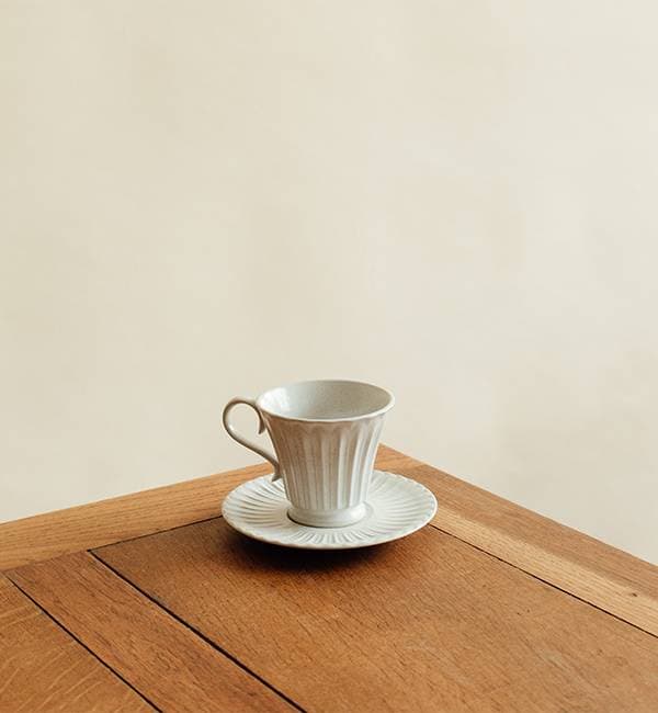 This Cup and Saucer set has a classic Tapered shape for English tea time. Featuring the matte-finish texture and petal-like rim, it gives the elegant vibe to decorate any style of table.