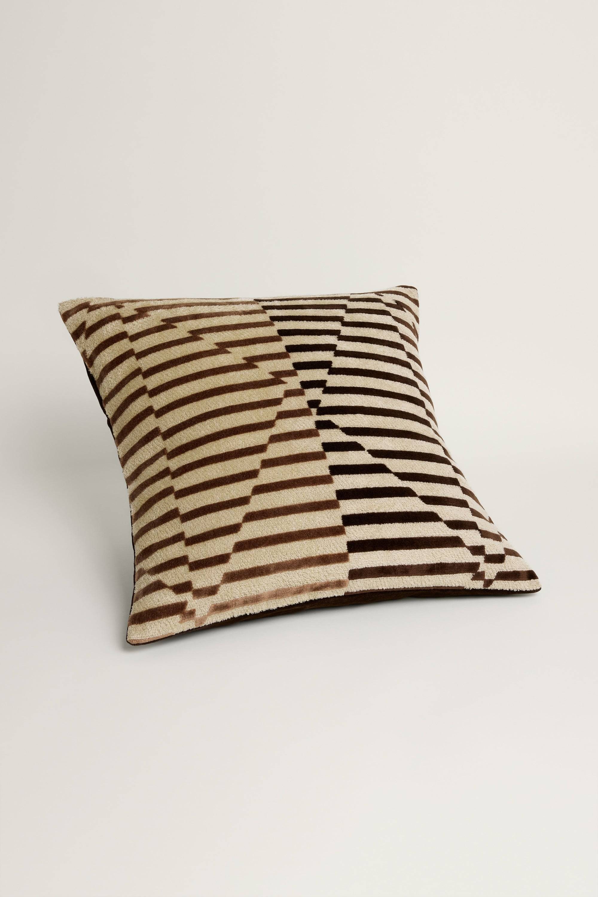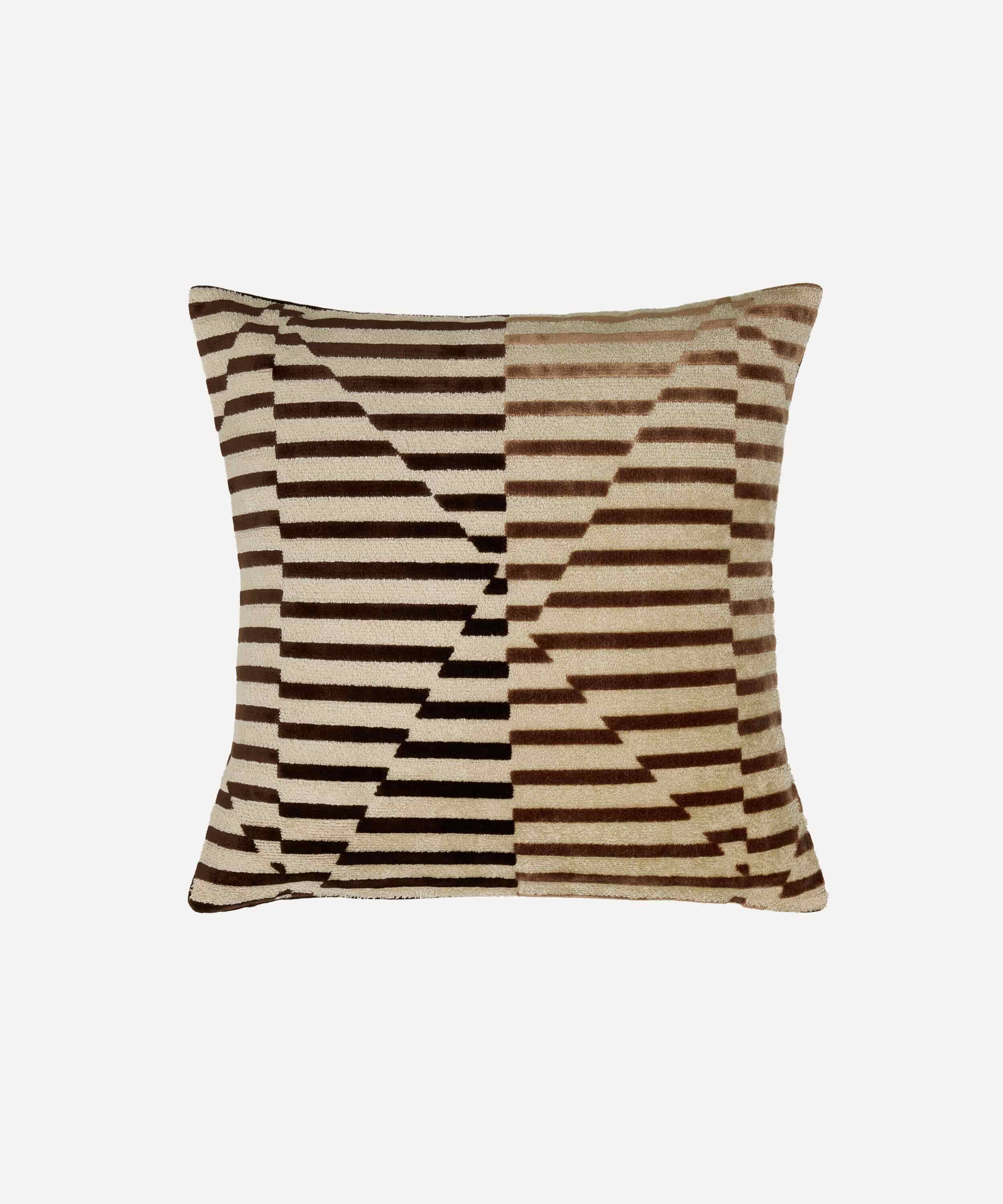 The classic Striped Velvet cushion cover is reimagined in this tactile patterned design, which draws on the bold striped interiors of Polo Palladio Jaipur. It features distinctive staggered stripes in embossed velvet against a contrast cotton blend, for an effect that’s as eye-catching as it is inviting to the touch.