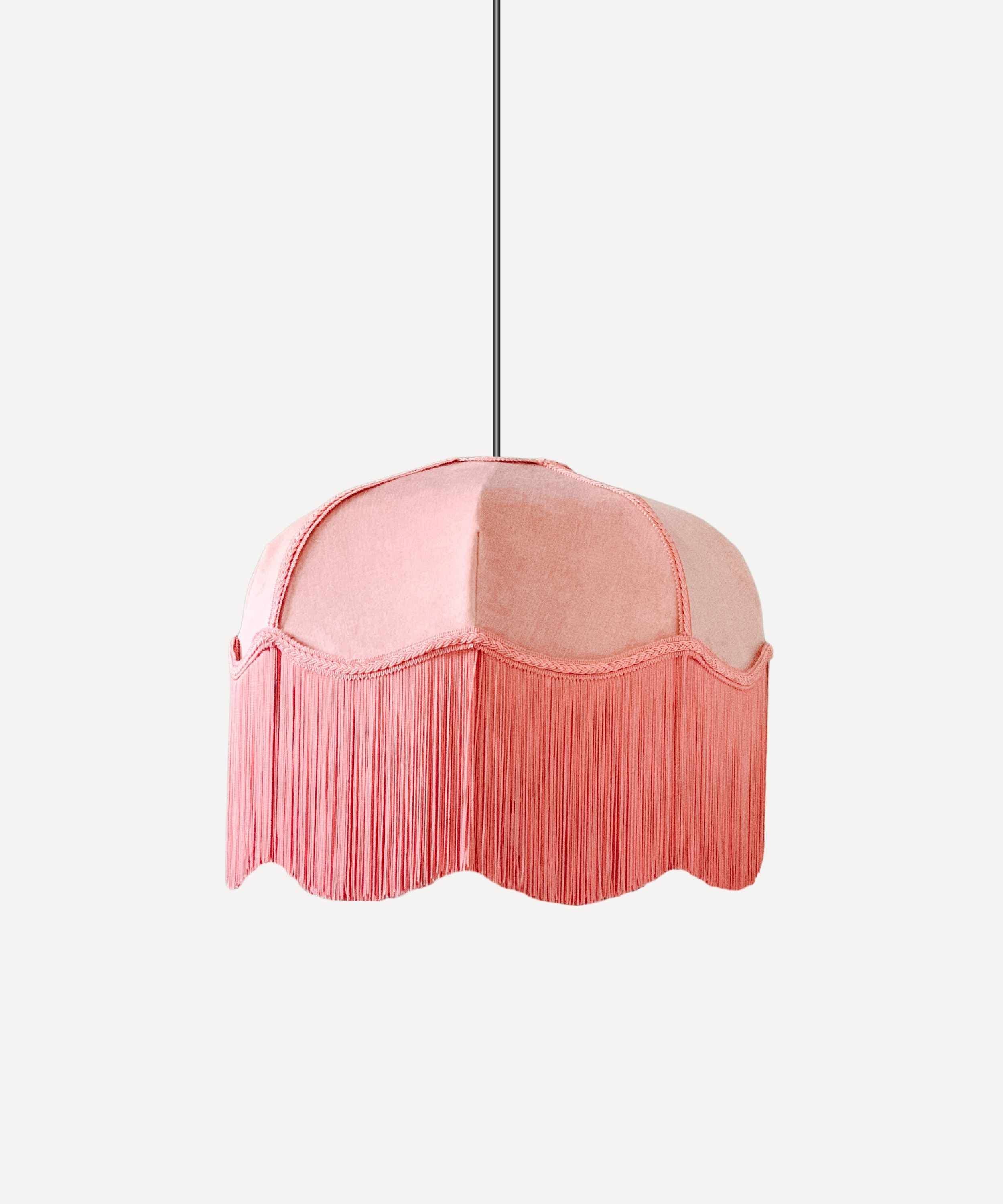 Dusty-pink velvet lampshade with matching fringe