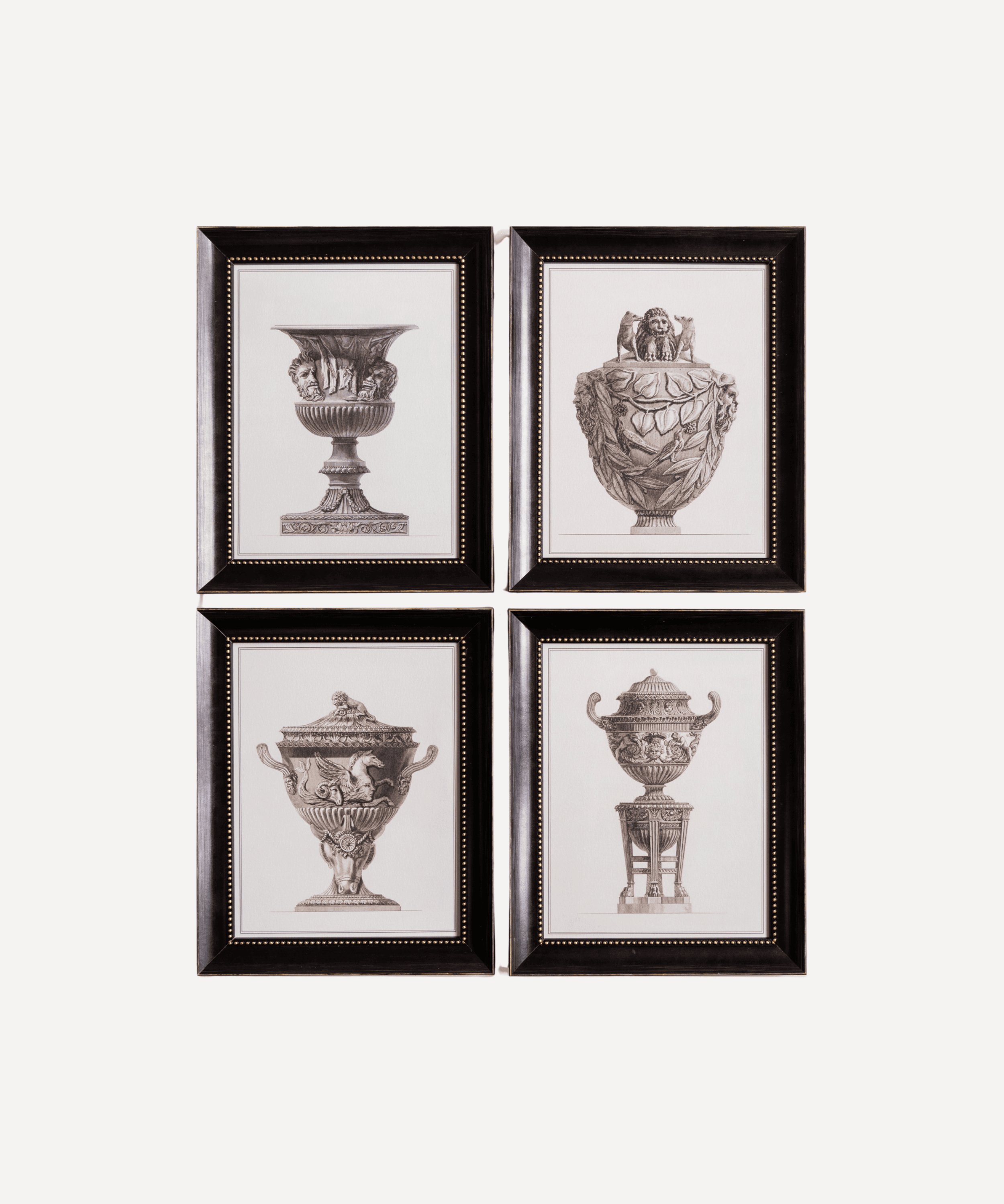 Simple and elegant, these beautiful marble vases by renowned Italian artist, taken from a larger collection complete in the mid 1700s have been lovingly restored and reprinted. Adding a simple yet sophisticated boarder to these pieces with a handmade frame in black with gold effect dot detail.