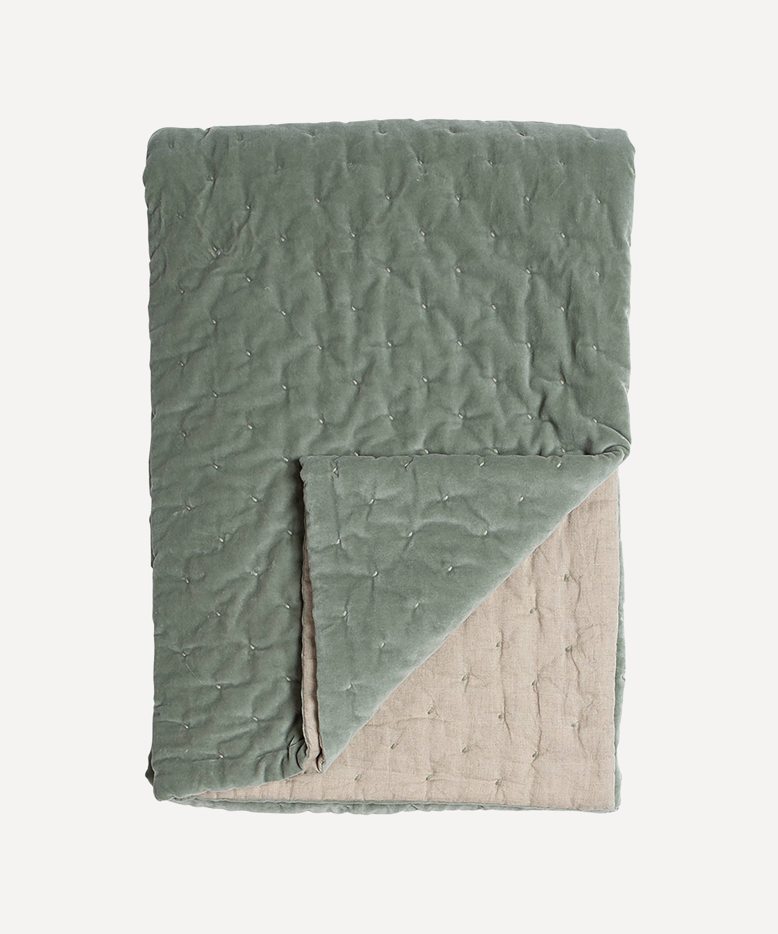 These beautiful soft velvet linen quilts let the quality of the materials speak for themselves. Hand stitched quilting on a soft cotton velvet front is contrasted with an un-dyed 100% natural linen reverse. Filled with 100% cotton, giving the quilt a lovely weight and drape. Suitable for the foot of a double or kingsized bed.