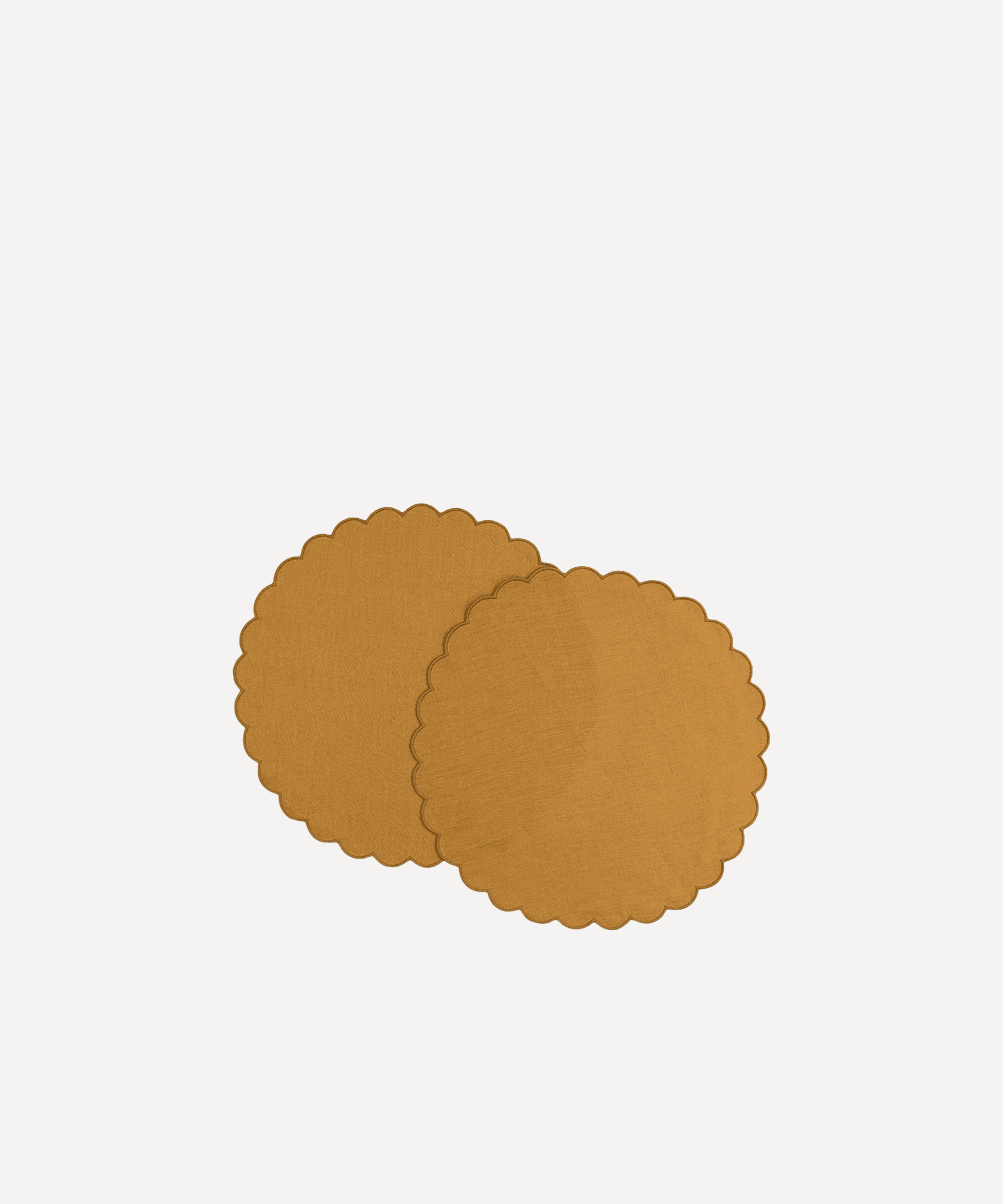 Yellow ocher scalloped round linen placemats (set of 2)