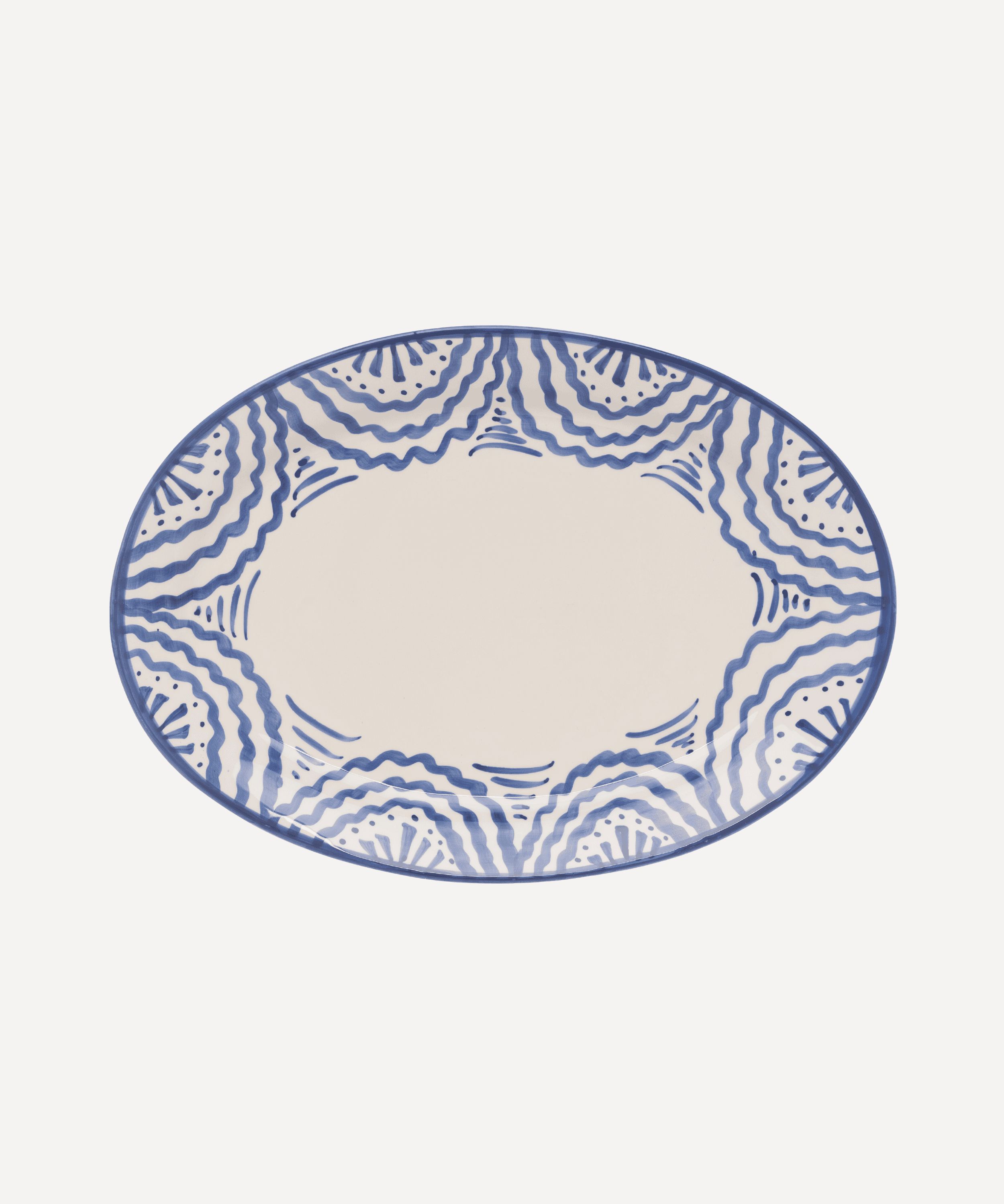 Hand-painted large blue oval serving platter.A very versatile, showstopping centrepiece, perfect for roasts, large sharing salads, mountains of pasta or desserts.