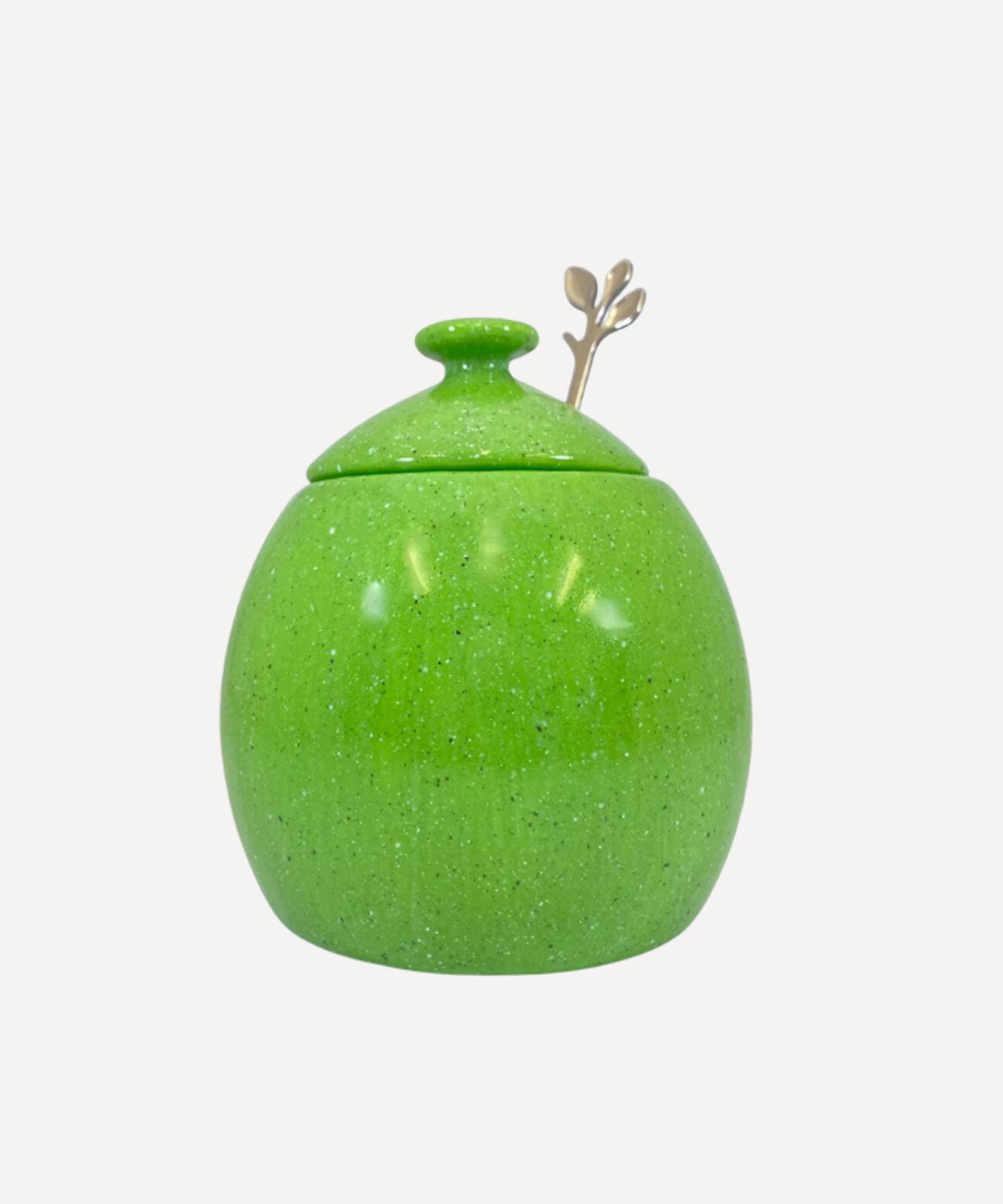 Sugar Bowl with Spoon - Lime Green Glaze